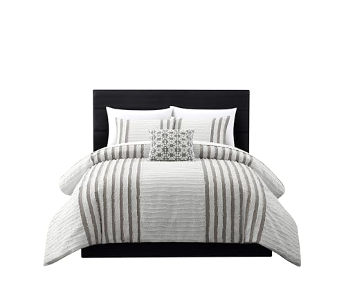 Chic Home Green Bed in a Bag Comforter Set, King Size (4 Pieces), Sofia - Organic Cotton Bedding with Striped Pattern Jacquard Design - Comforter, Pillow Shams and Decorative Pillow