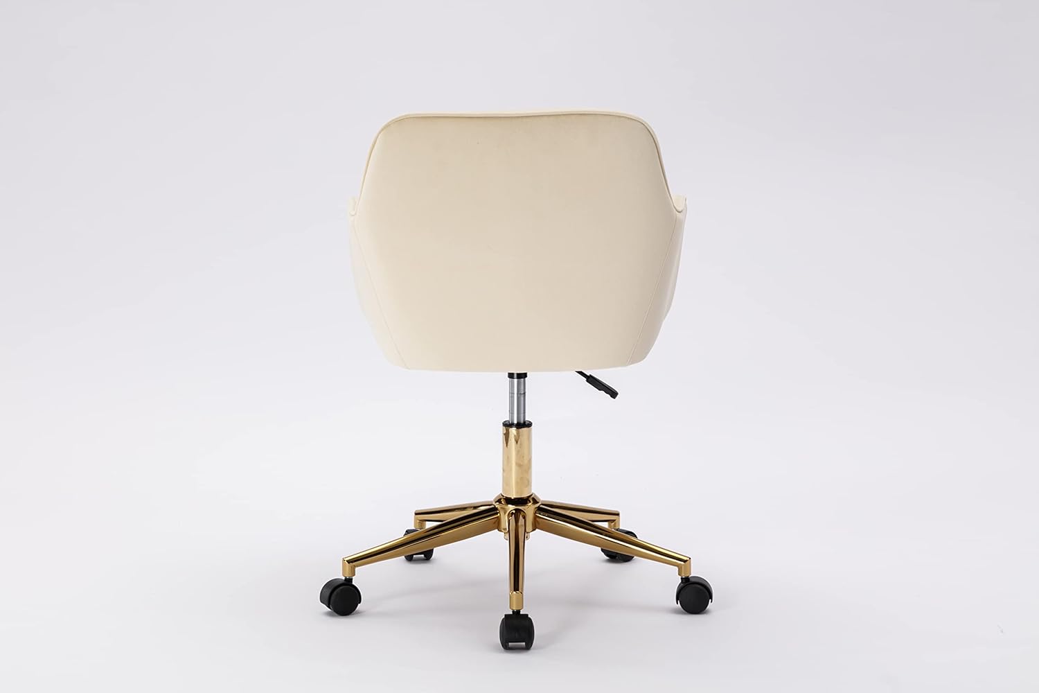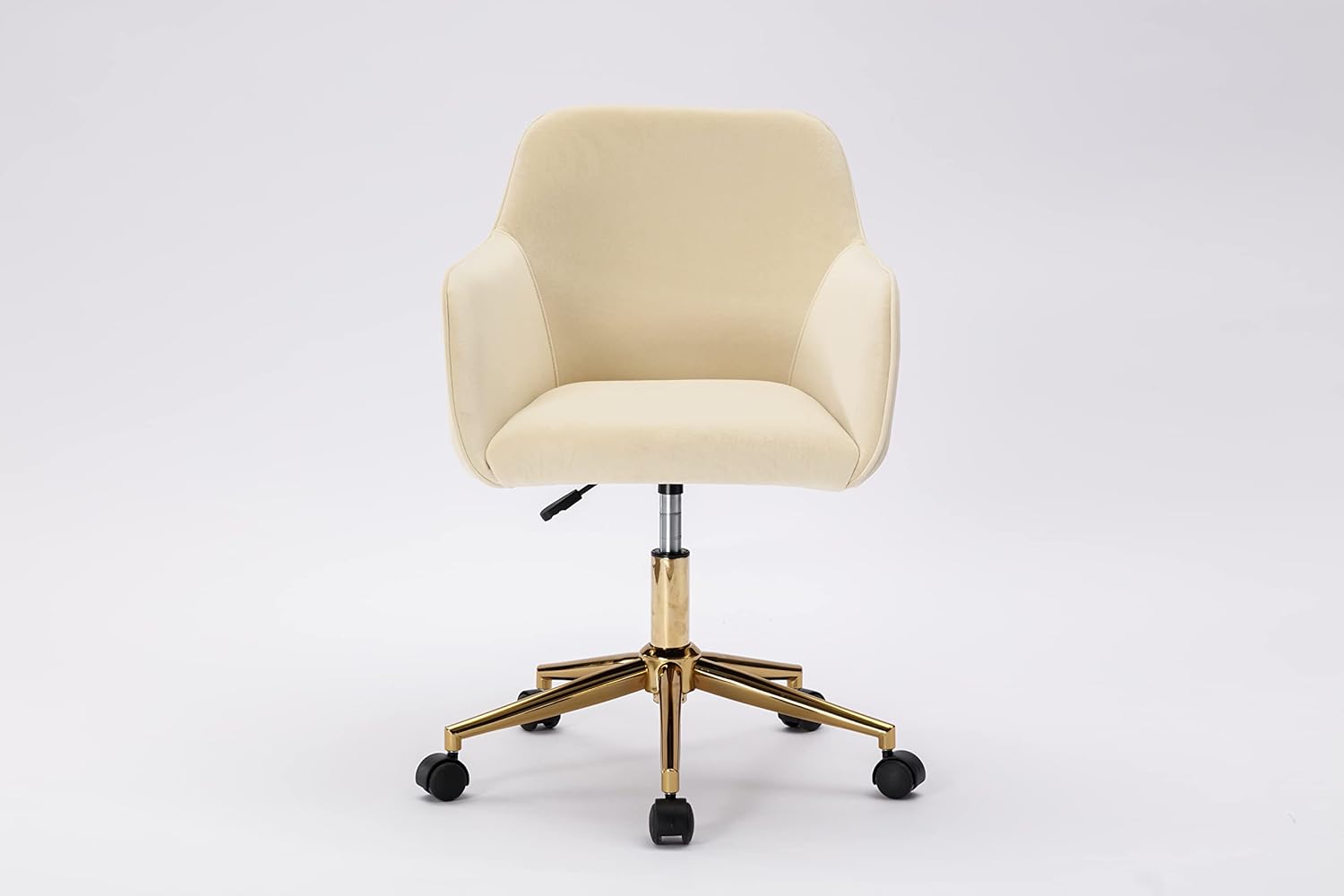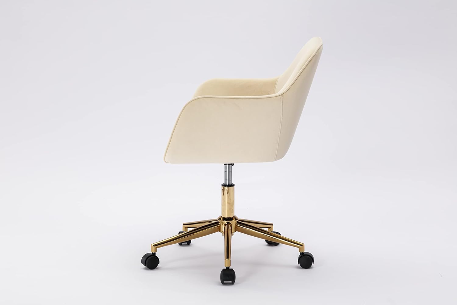 Modern Velvet Fabric Material Adjustable Height 360 revolving Home Office Chair with Gold Metal Legs and Universal Wheels for Indoor,Beige