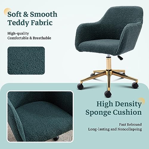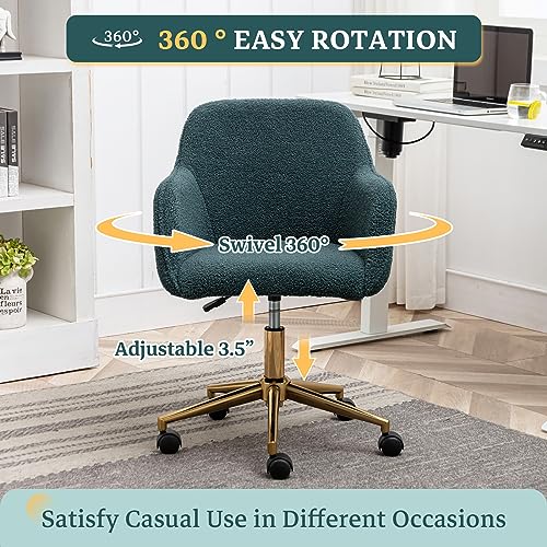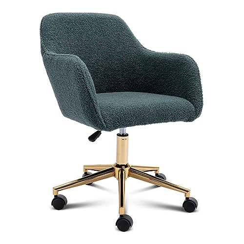 Modern Velvet Fabric Material Adjustable Height 360 revolving Home Office Chair with Gold Metal Legs and Universal Wheels for Indoor (White)