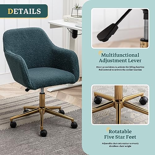 Modern Velvet Fabric Adjustable Height Gold Metal Legs 360 revolving Swivel Chair Office Home Furniture Elegant Aqua Light Blue Color