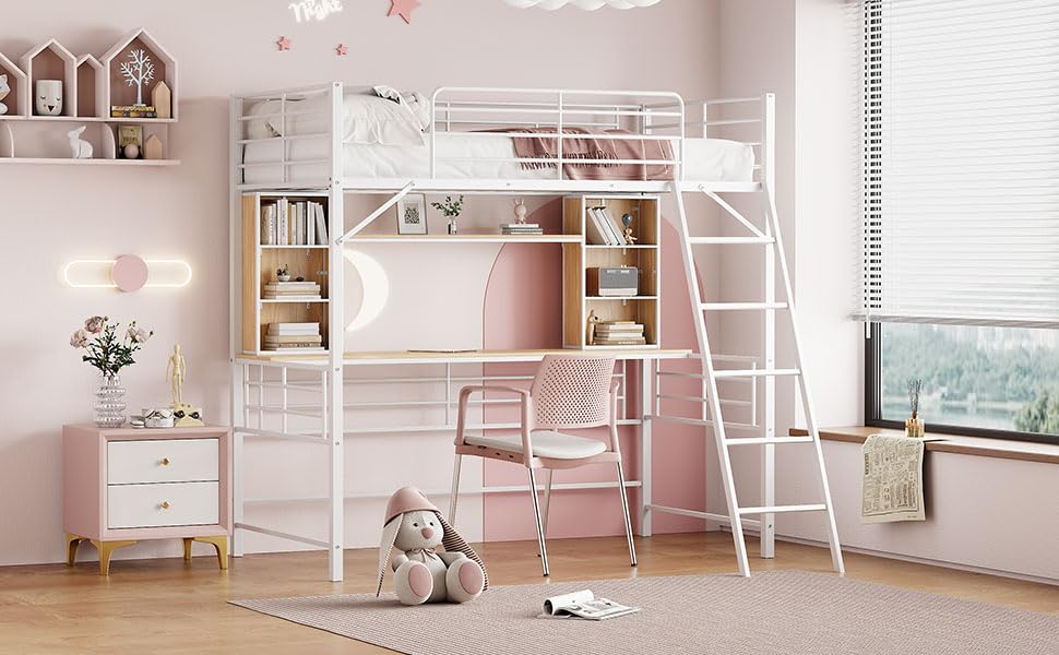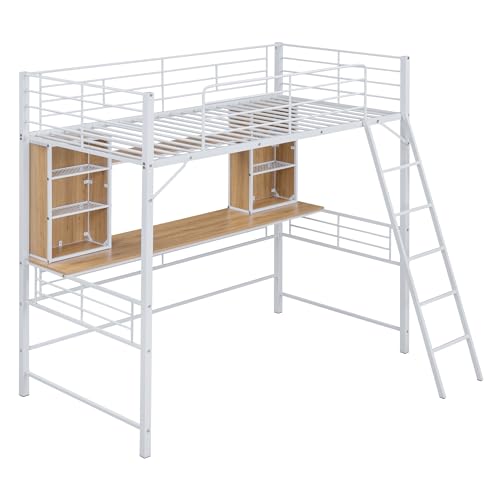 Harper & Bright Designs Full Size Loft Bed Frame for Boys Girls Kids Adults Toddler with Desk and Shelf, Loft Bed with Ladder,Full,White