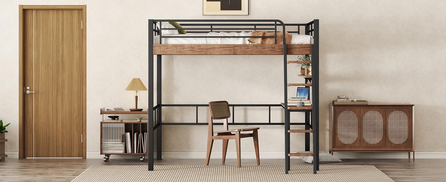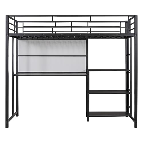 Twin Loft Bed with Desk and Storage Shelf, Heavy Duty Loft Bed with Ladder and Guardrail, Twin Loft Bed for Kids, Teens, Adults, Twin Loft Bed Black