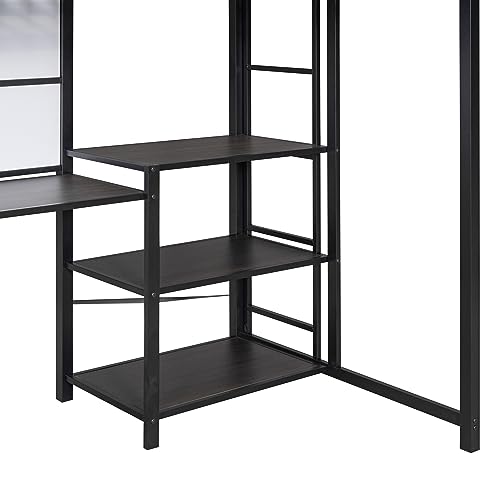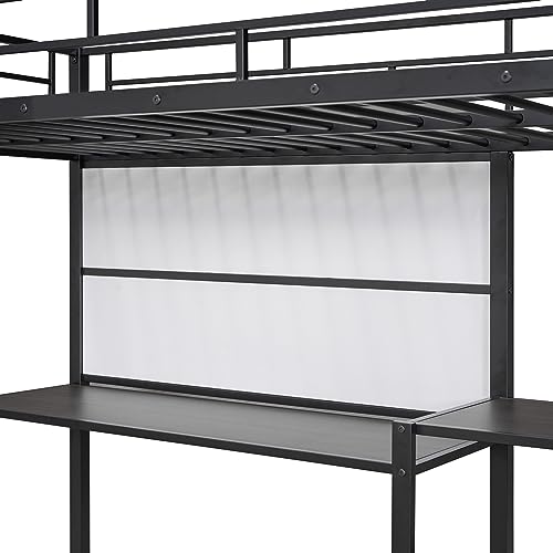Metal Full Size Loft Bed with Desk, Storage Shelf, Ladder, Black 78.70x70.10x69.30 in.