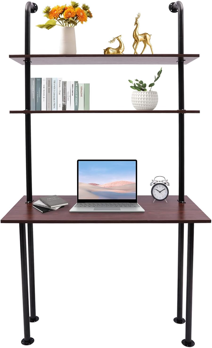 3-Tier Wall Mounted Desk, Floating Desk for Wall Industrial Floating Ladder Desk Shelf Desk Wall Organizer to Use As Working, Writing with Power Strip & Adhesive Hook