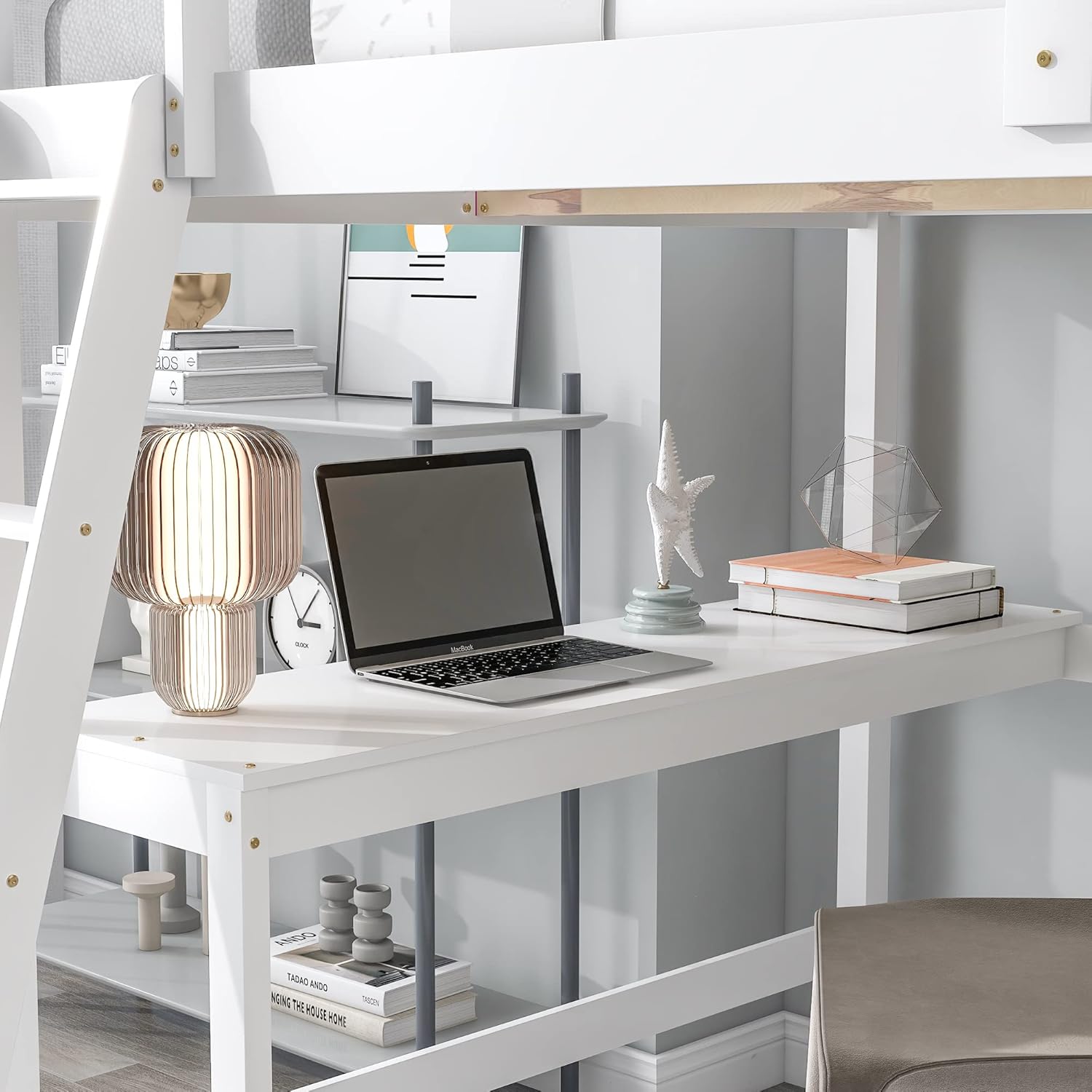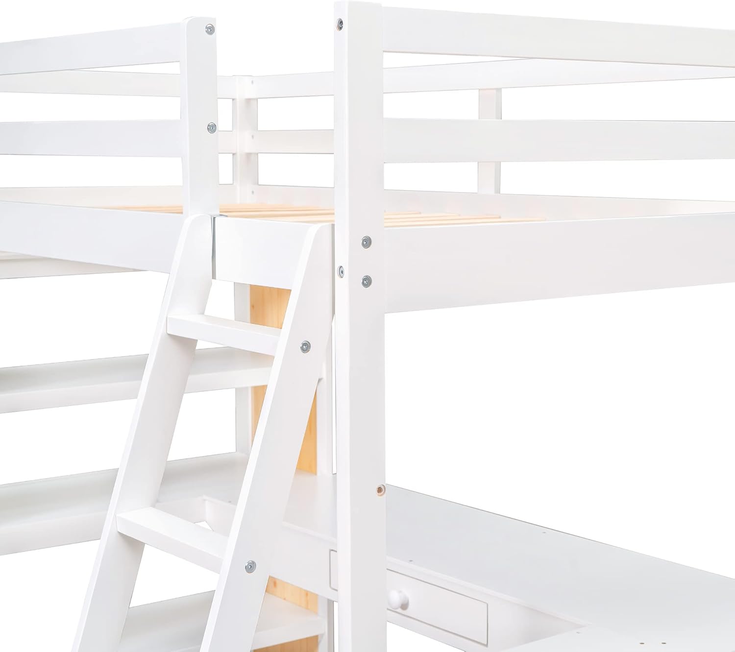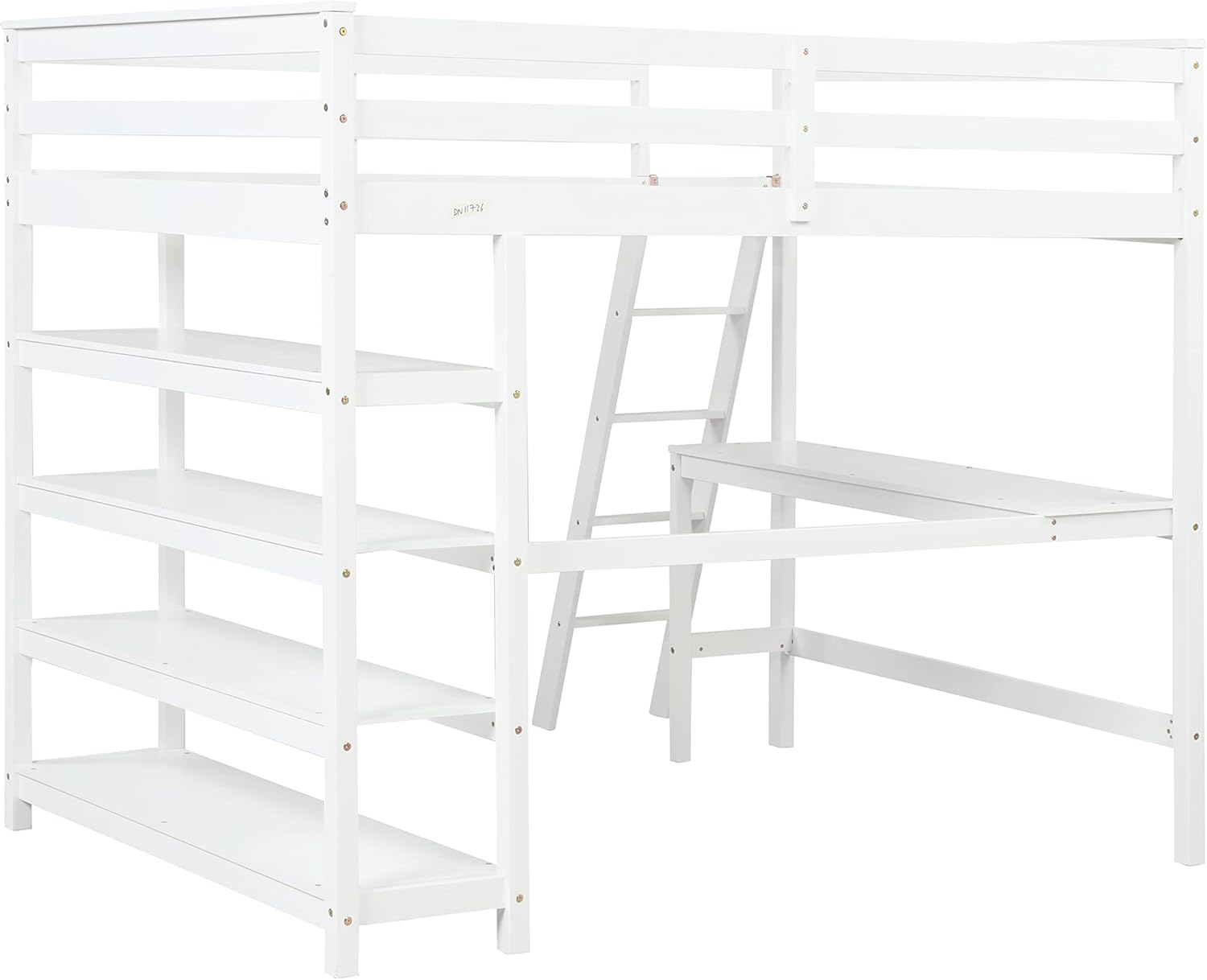 Loft Bed Full with desk,ladder,shelves, White