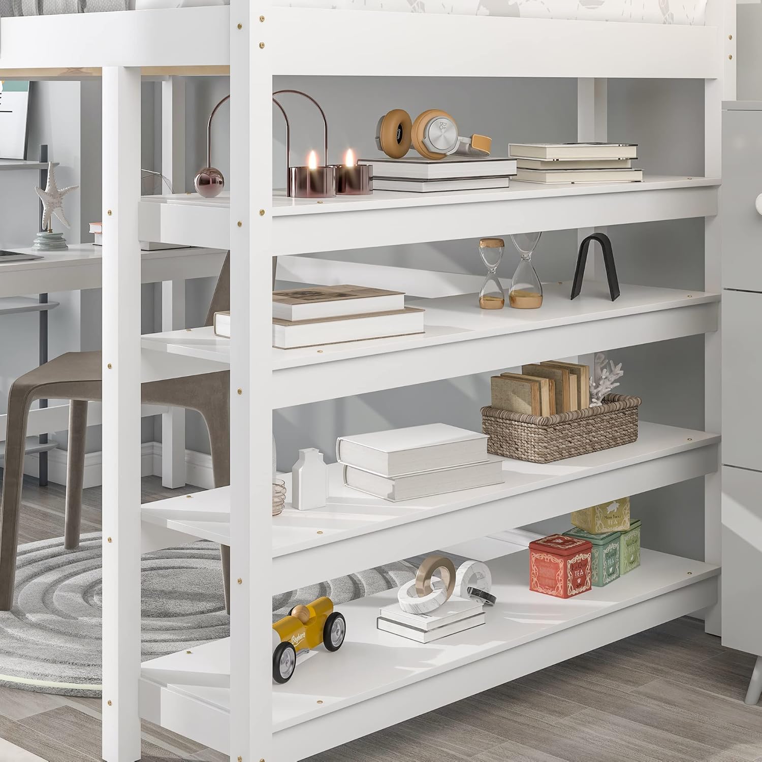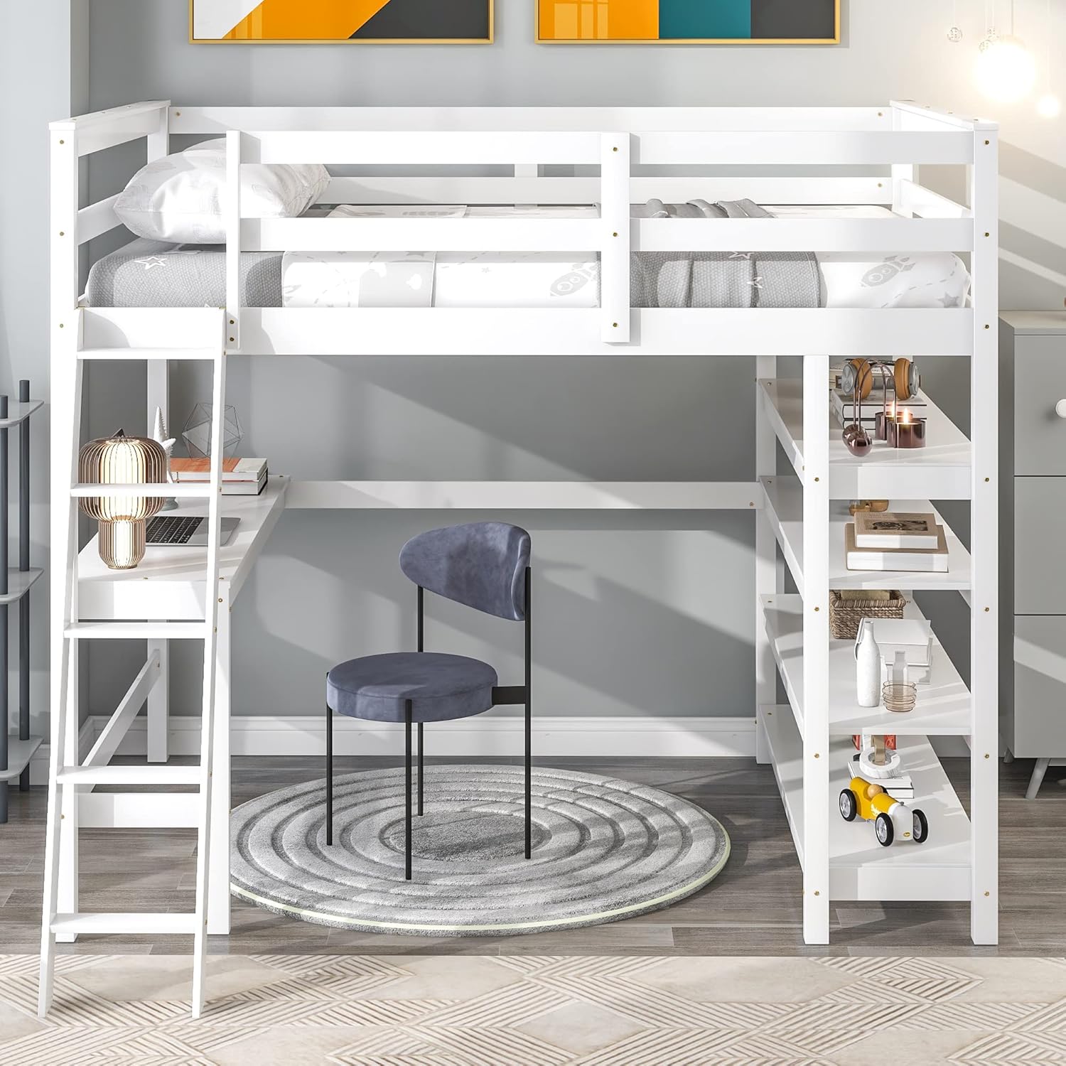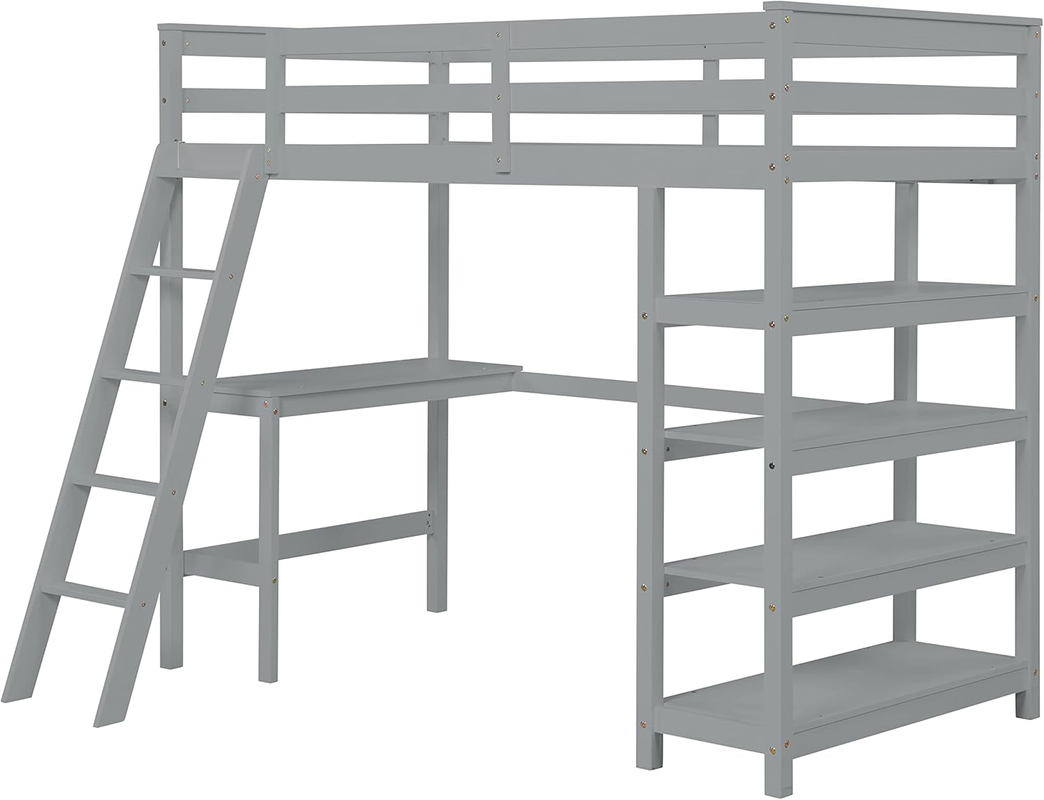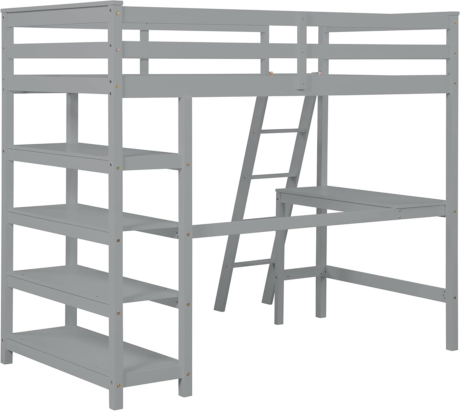 Loft Bed Twin with desk,ladder,shelves, Grey