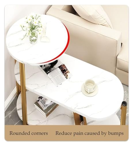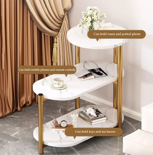 Faux Marble Side Table 3-Tier Narrow Bedside Table End Table Minimalist Multi-Function Nightstand with Storage Ladder Shelf Sofa Side Table(White 2,Large)