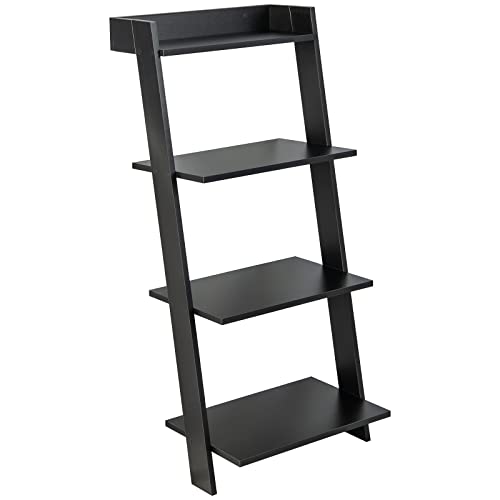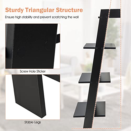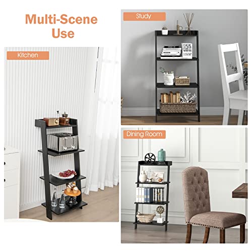 Giantex 4-Tier Wooden Ladder Shelf - Wall Leaning Storage Shelves with Anti-toppling Device, Anti-falling Baffles, Ladder Bookshelf Organizer for Living Room, Bedroom, Small Place, Black