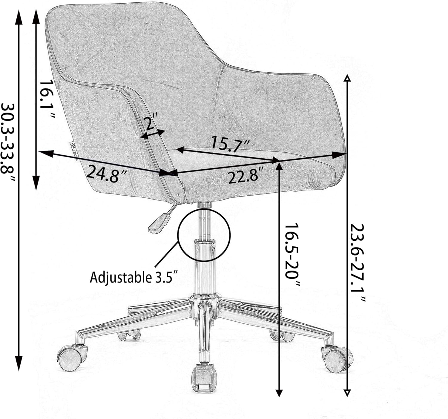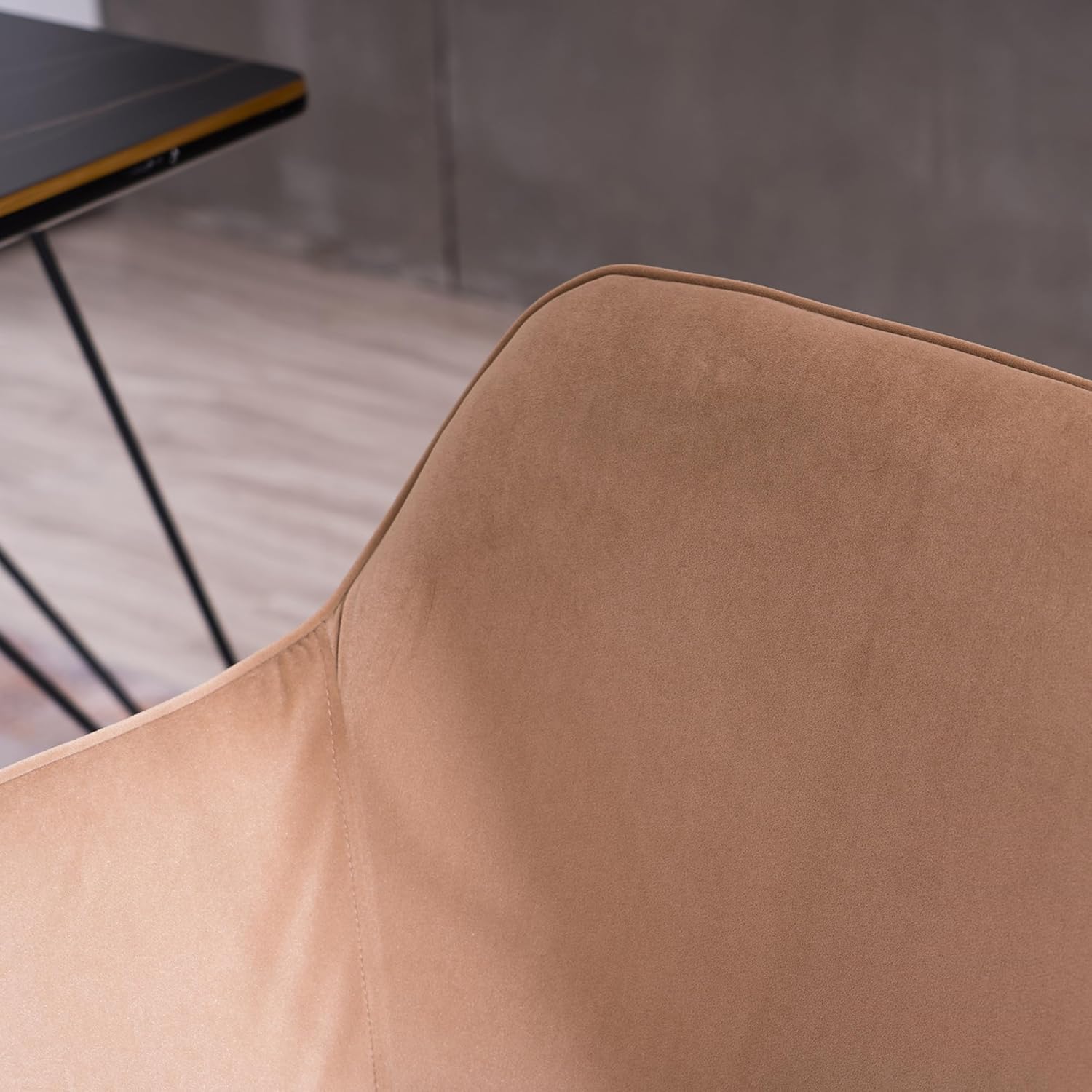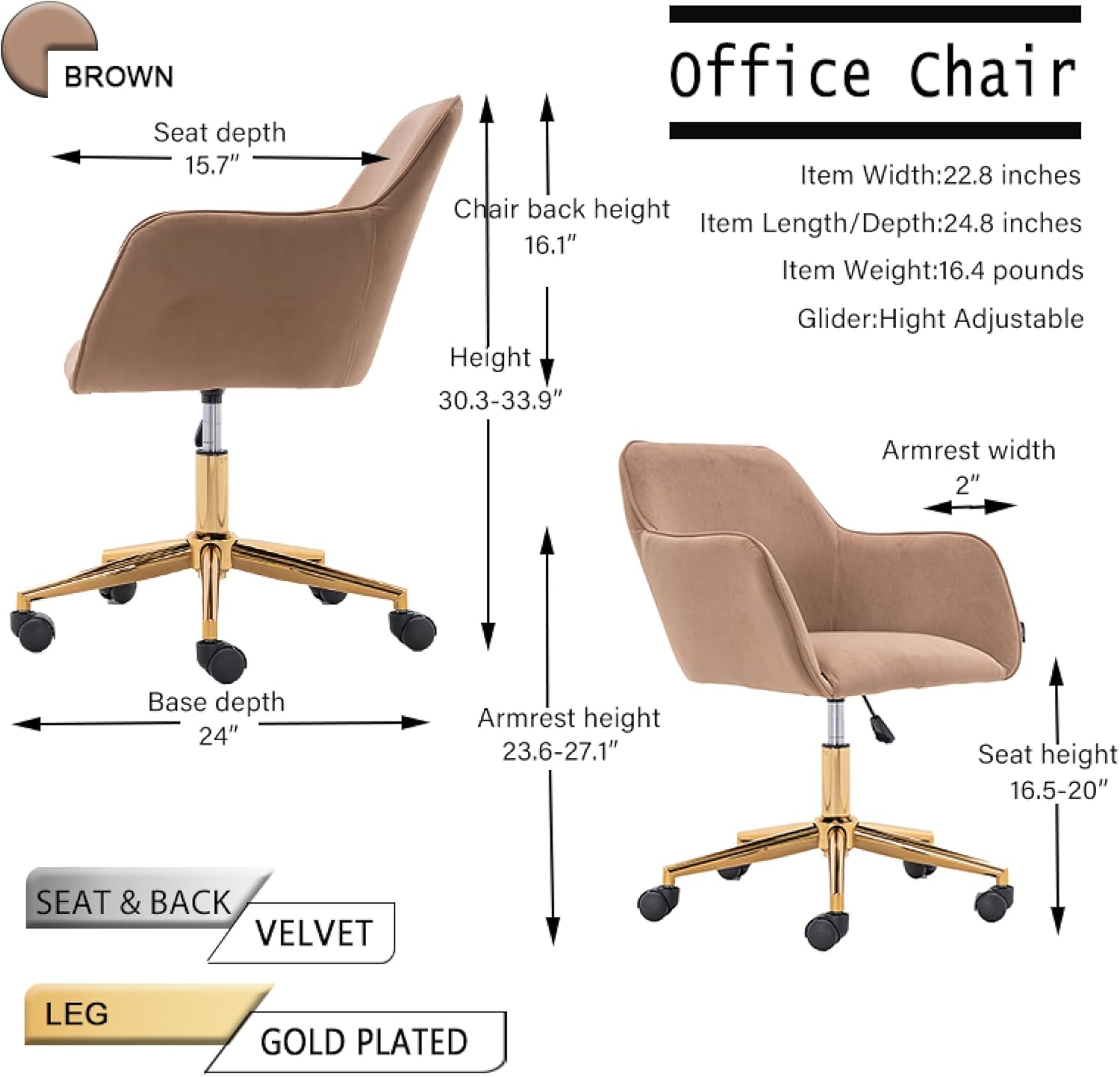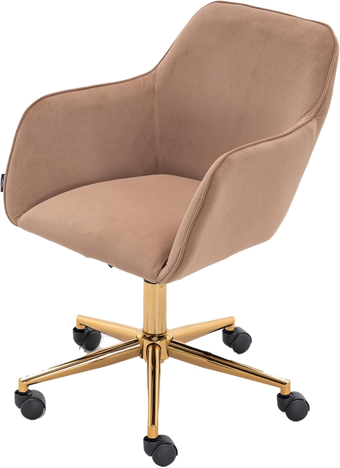 002-Velvet Fabric Adjustable Height 360 revolving Home Office Chair with Gold Metal Legs and Universal Wheels for Indoor,Light Coffee