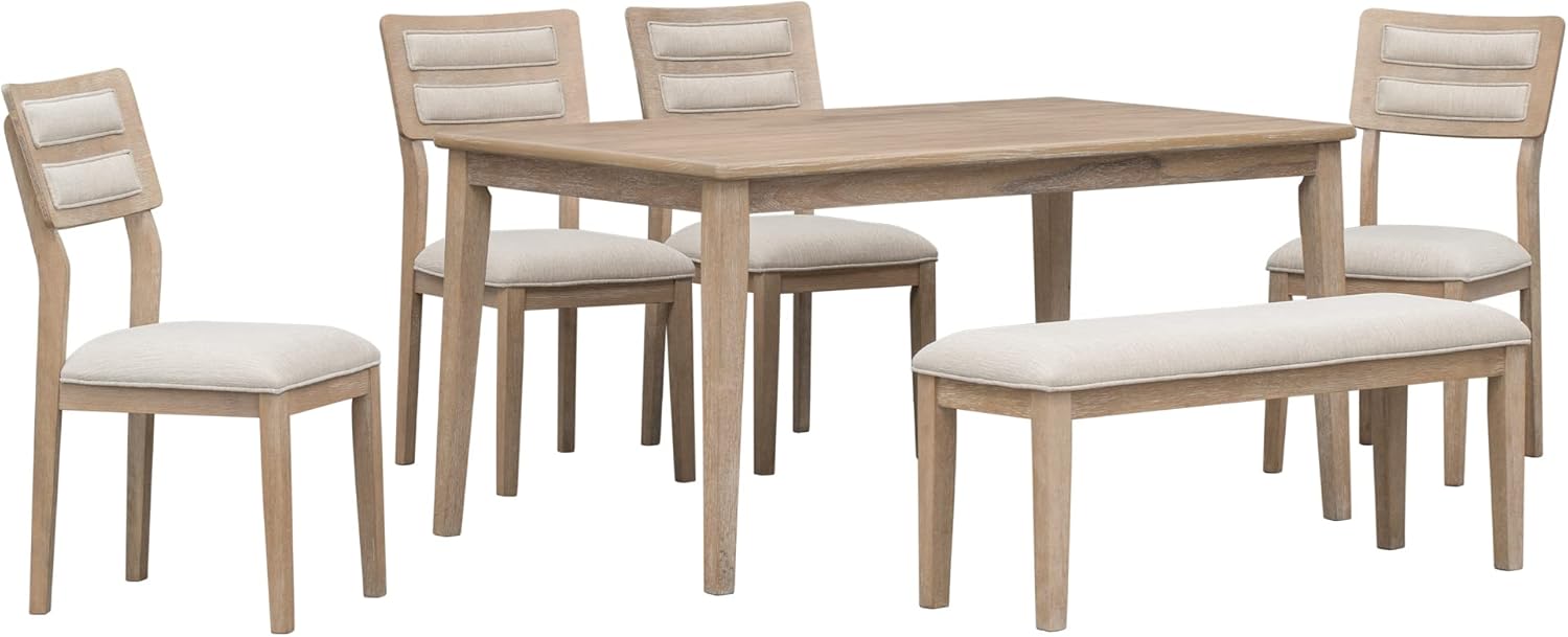 Room Pieces Dining Set for 6,Classic Traditional Style Rectangular Table and 4 Upholstered Chairs 1 Bench for Family Kitchen,Natural Wood Wash, Onesize