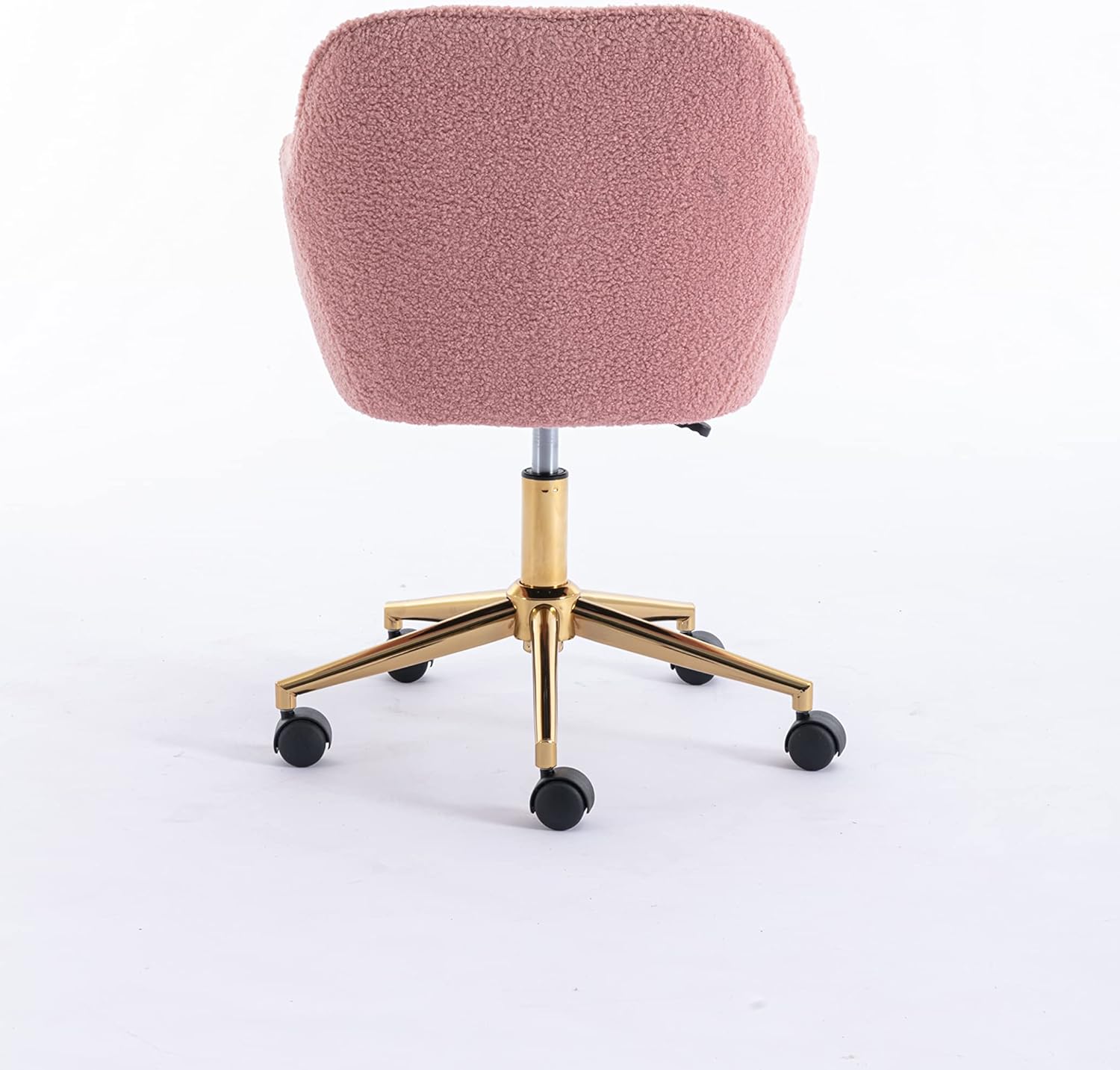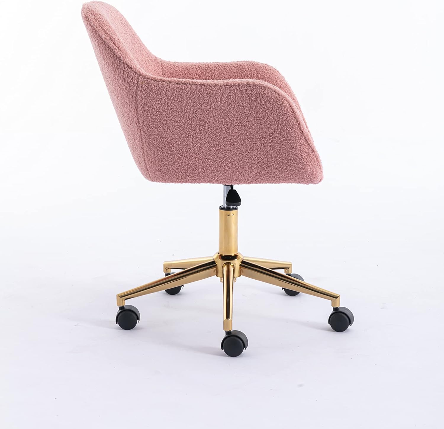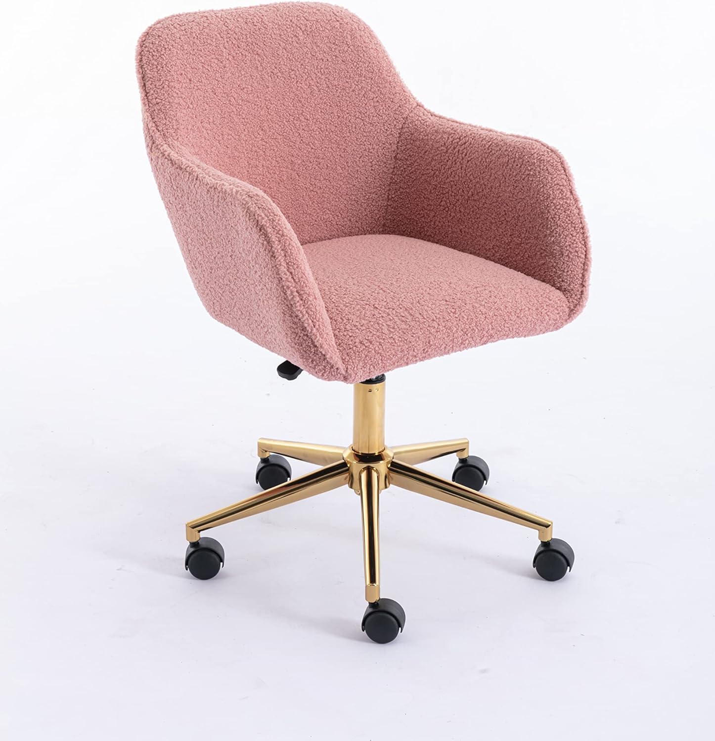 Modern Teddy Fabric Material Adjustable Height 360 Revolving Home Office Chair with Gold Metal Legs and Universal Wheel for Indoor (Pink)