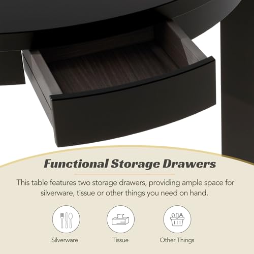 5-Piece Round Dining Table Set for 4, Farmhouse Wood Extendable Kitchen Table and 4 Dining Chairs Dining Room Table Set with Storage Drawers and 16" Removable Leaf for Kitchen, Dining Room, Espresso