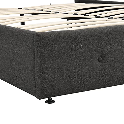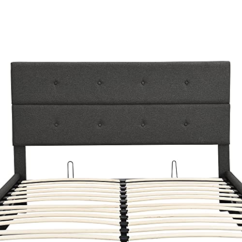 Merax Queen Size Upholstered Platform Bed with Underneath Storage, Button-Tufted Headboard and Footboard, No Box Spring Required Wood Bed Frame with Bentwood Slats, Grey