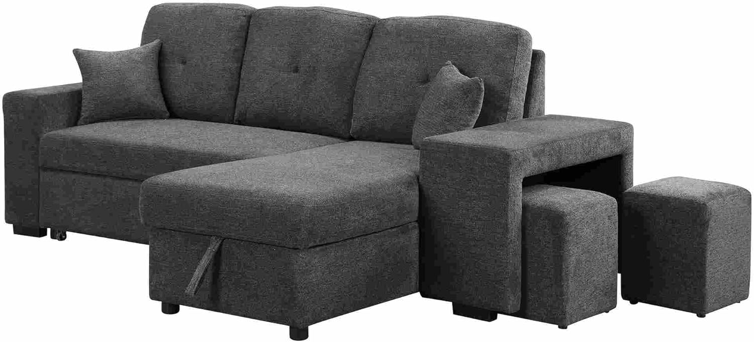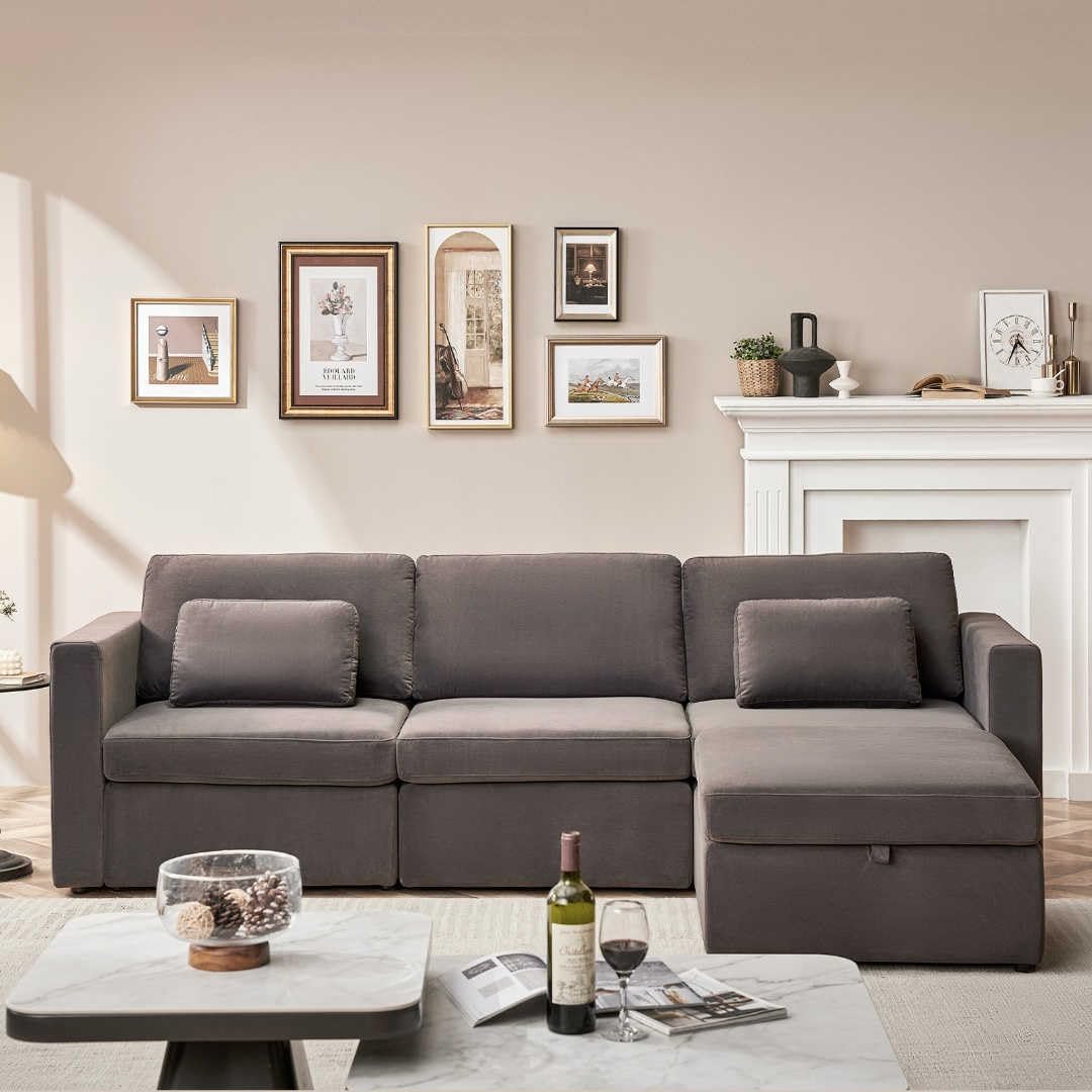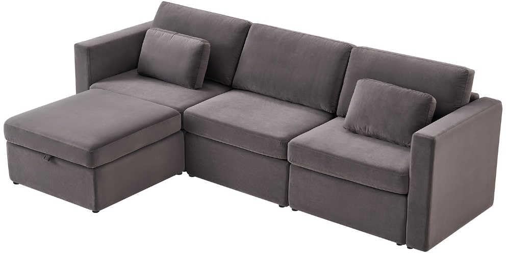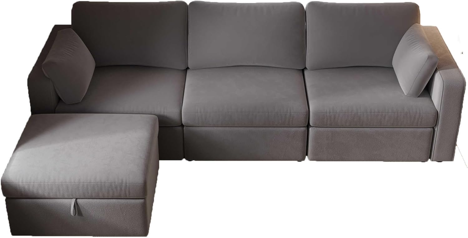 Convertible L-Shaped Sofa Bed with Storage, Modular Couch Set Includes 2 Ottomans - Stylish Sleeper Futon for Living Room, Apartment, and Small Spaces - Comfortable Velvet Upholstered