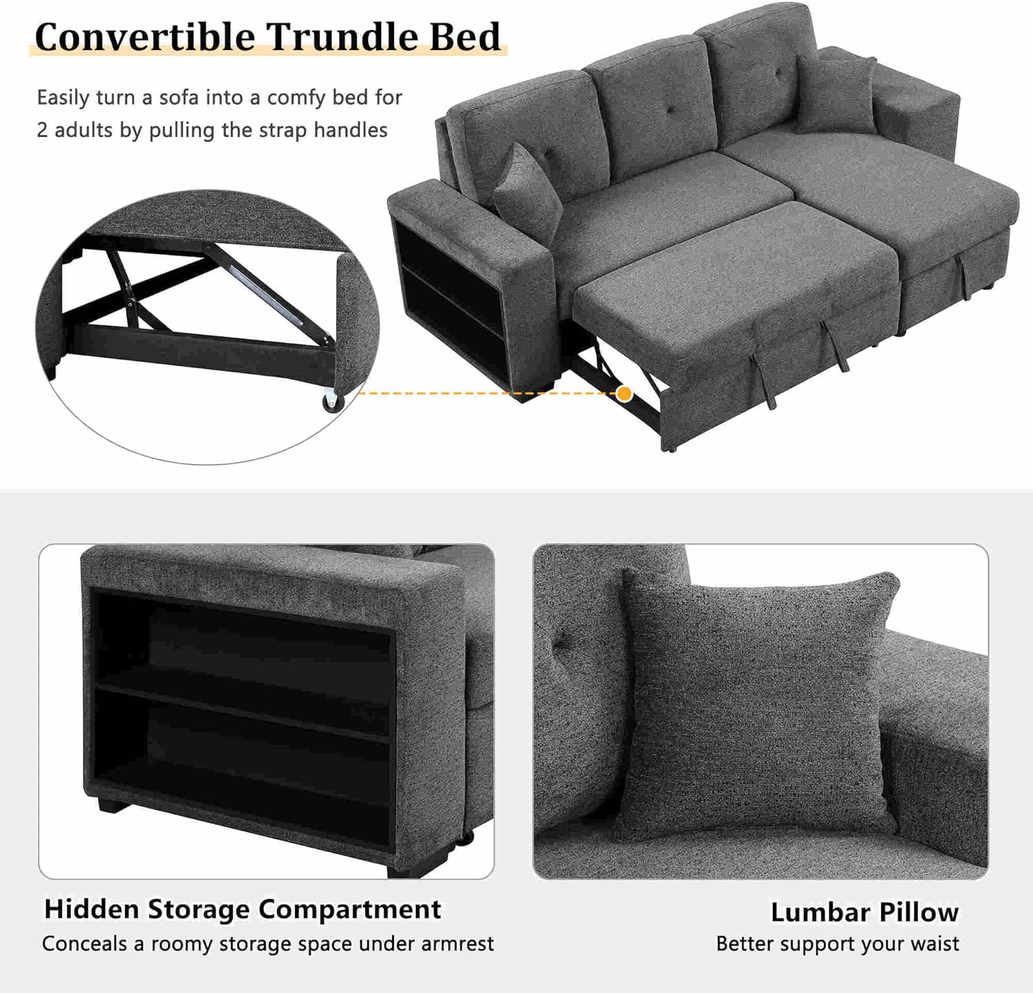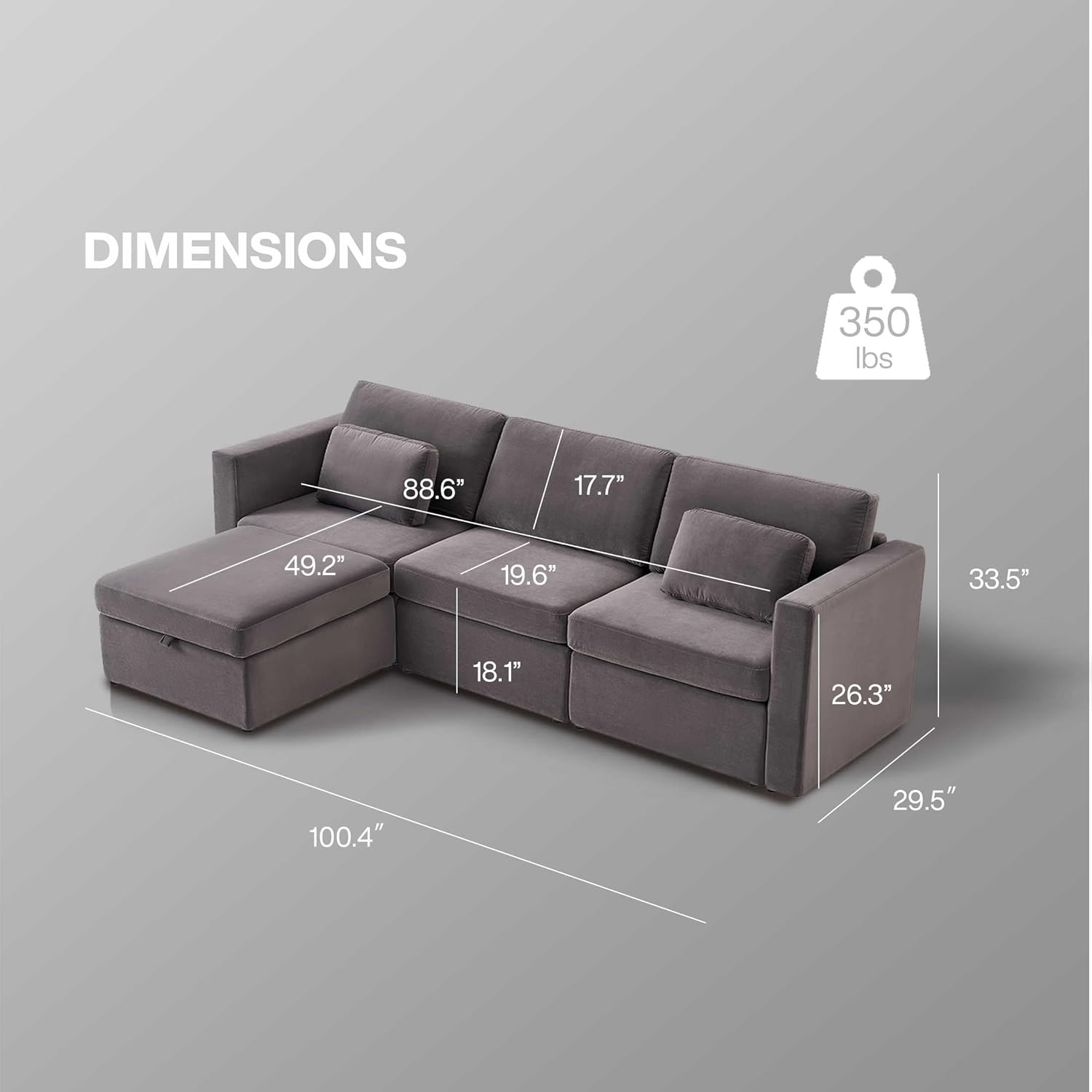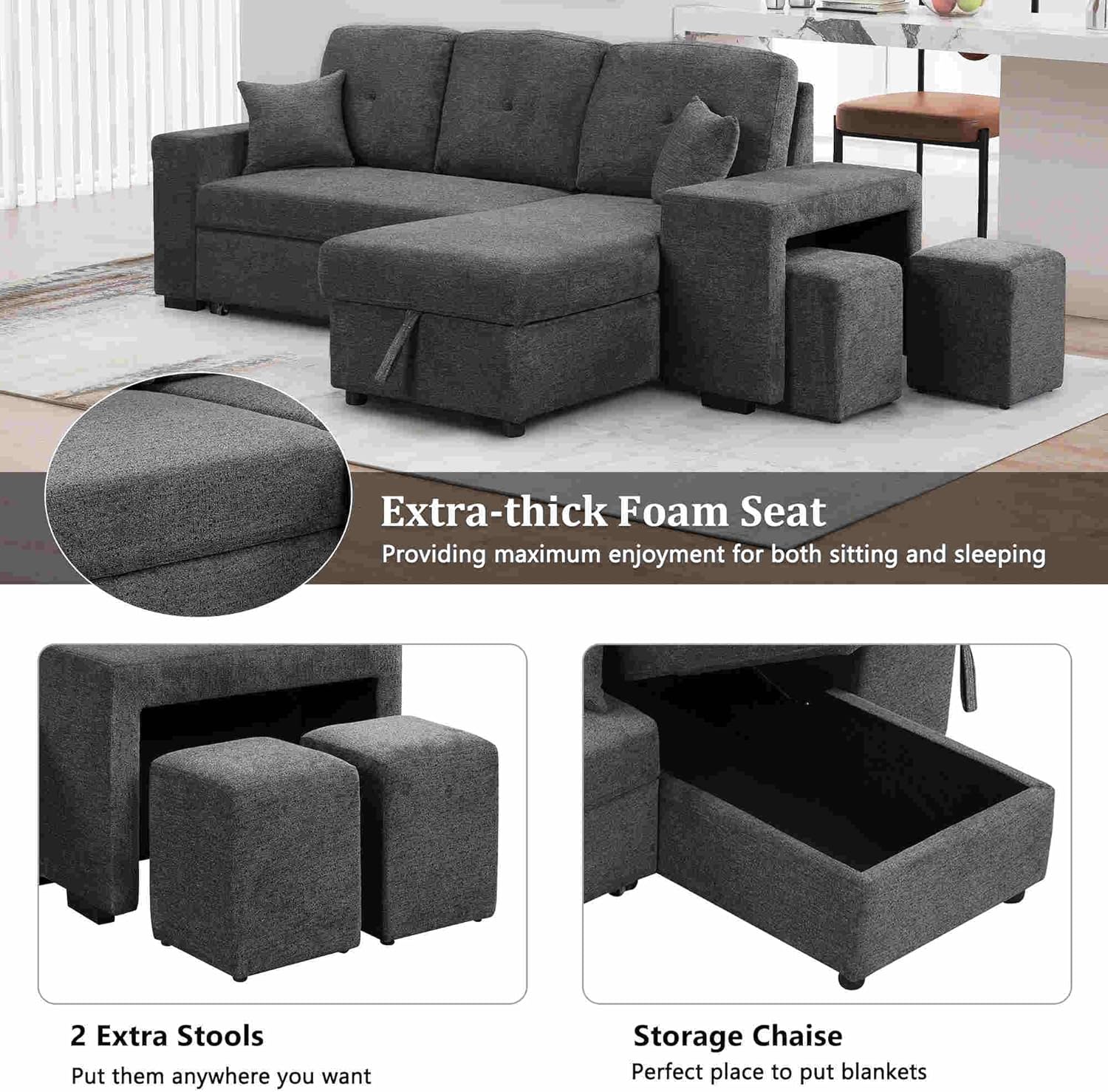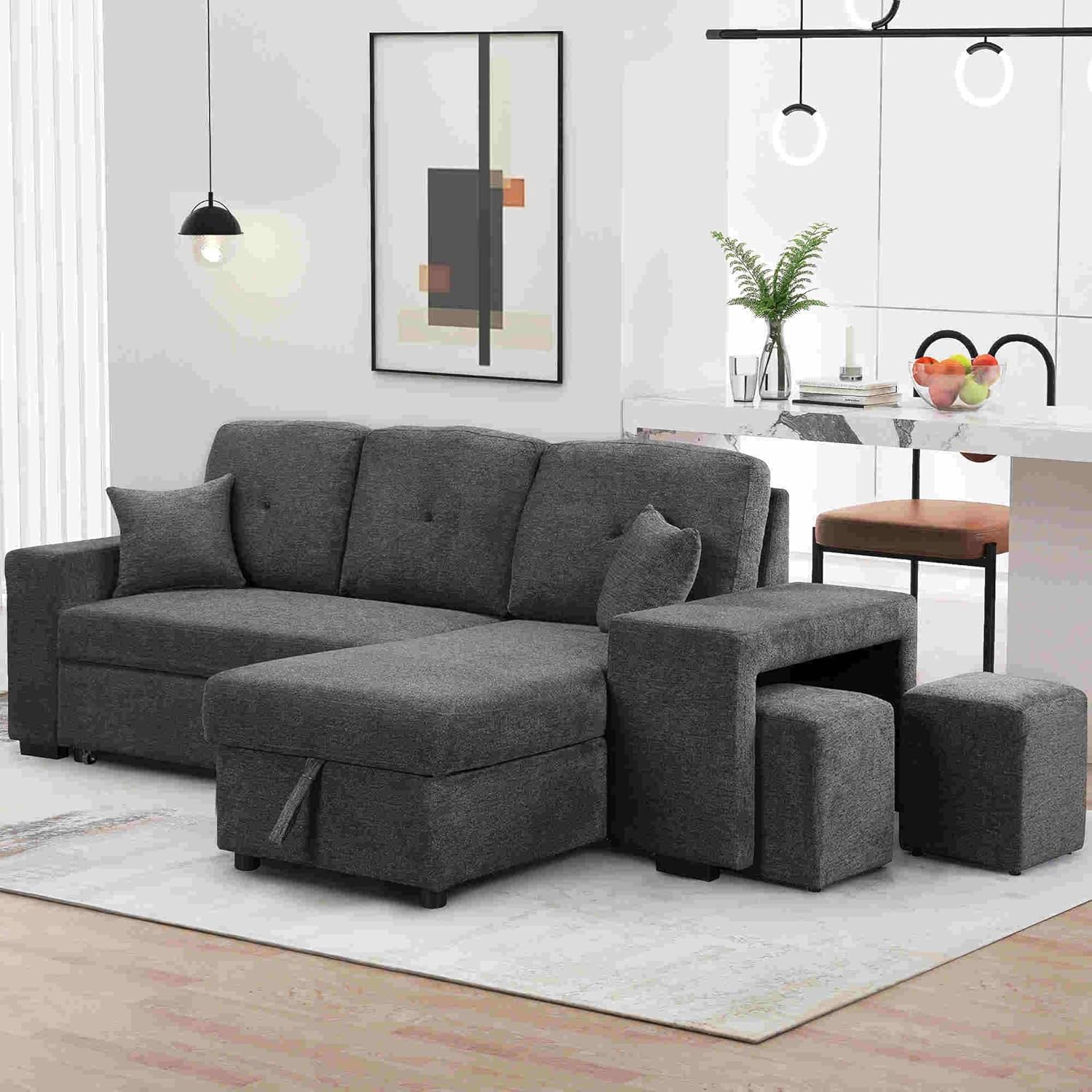 Convertible L-Shaped Sofa Bed with Storage, Modular Couch Set Includes 2 Ottomans - Stylish Sleeper Futon for Living Room, Apartment, and Small Spaces - Comfortable Velvet Upholstered