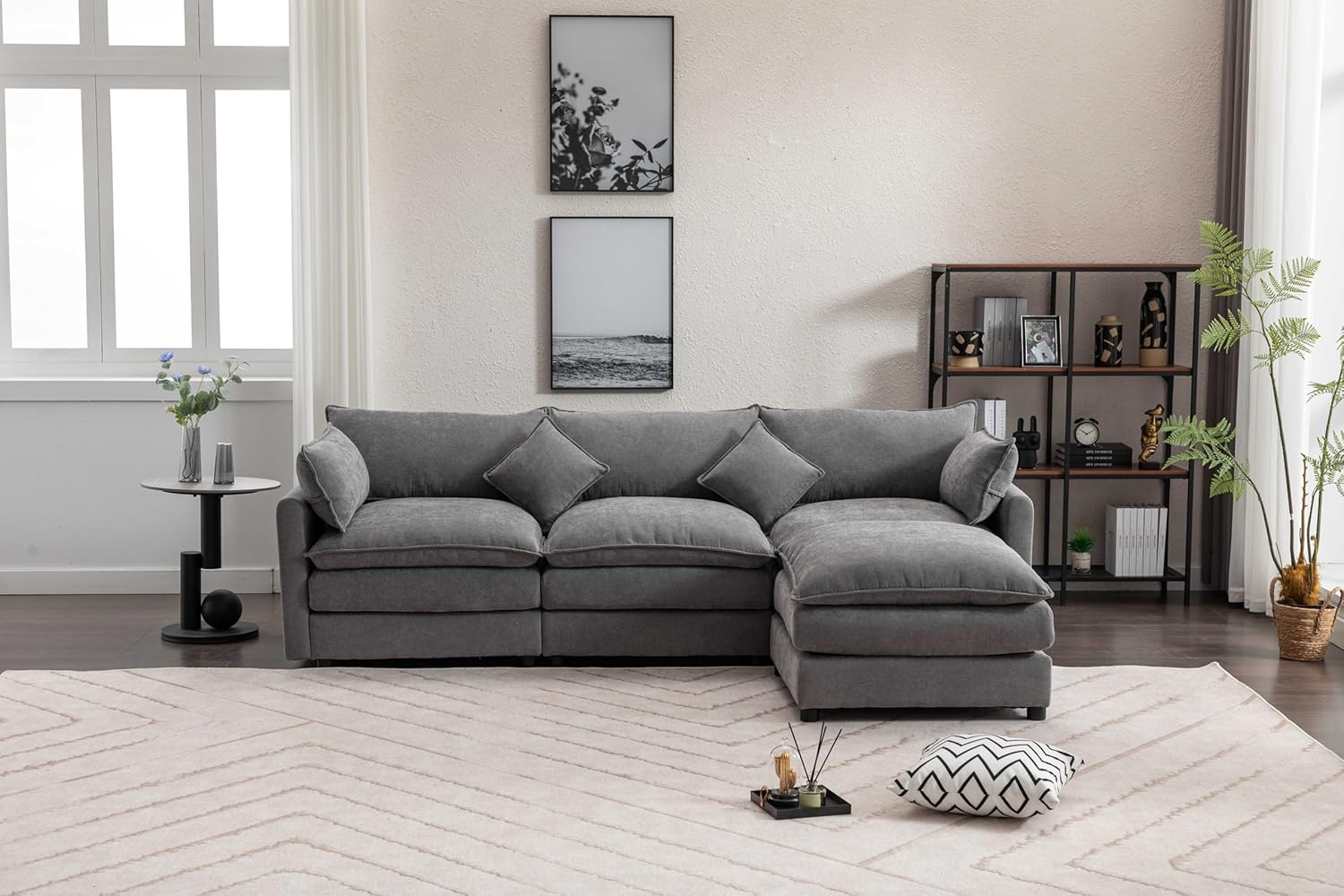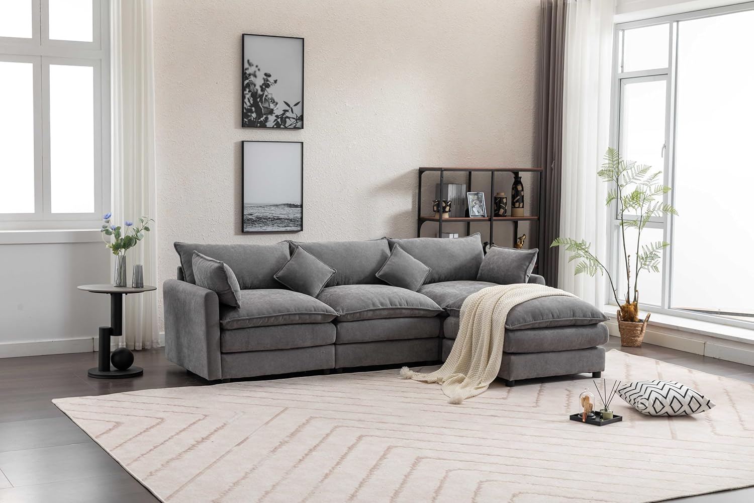 Modern L-Shaped Modular Sofa with Ottoman Stylish 3-Seater Couch for Living Room, Bedroom & Apartment Durable, Comfortable and Versatile Furniture for Enhanced Relaxation Customizable Layouts