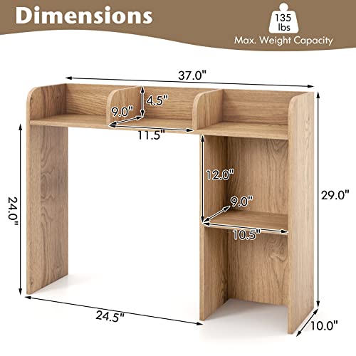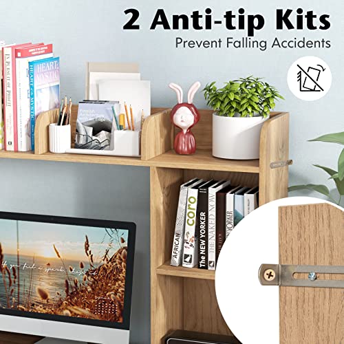 Tangkula Desktop Bookshelf, Countertop Storage Hutch with 5 Shelves for Computer Desk, 3-Tier Display Rack, Multipurpose Wood Storage Organizer for Dorm Office Home