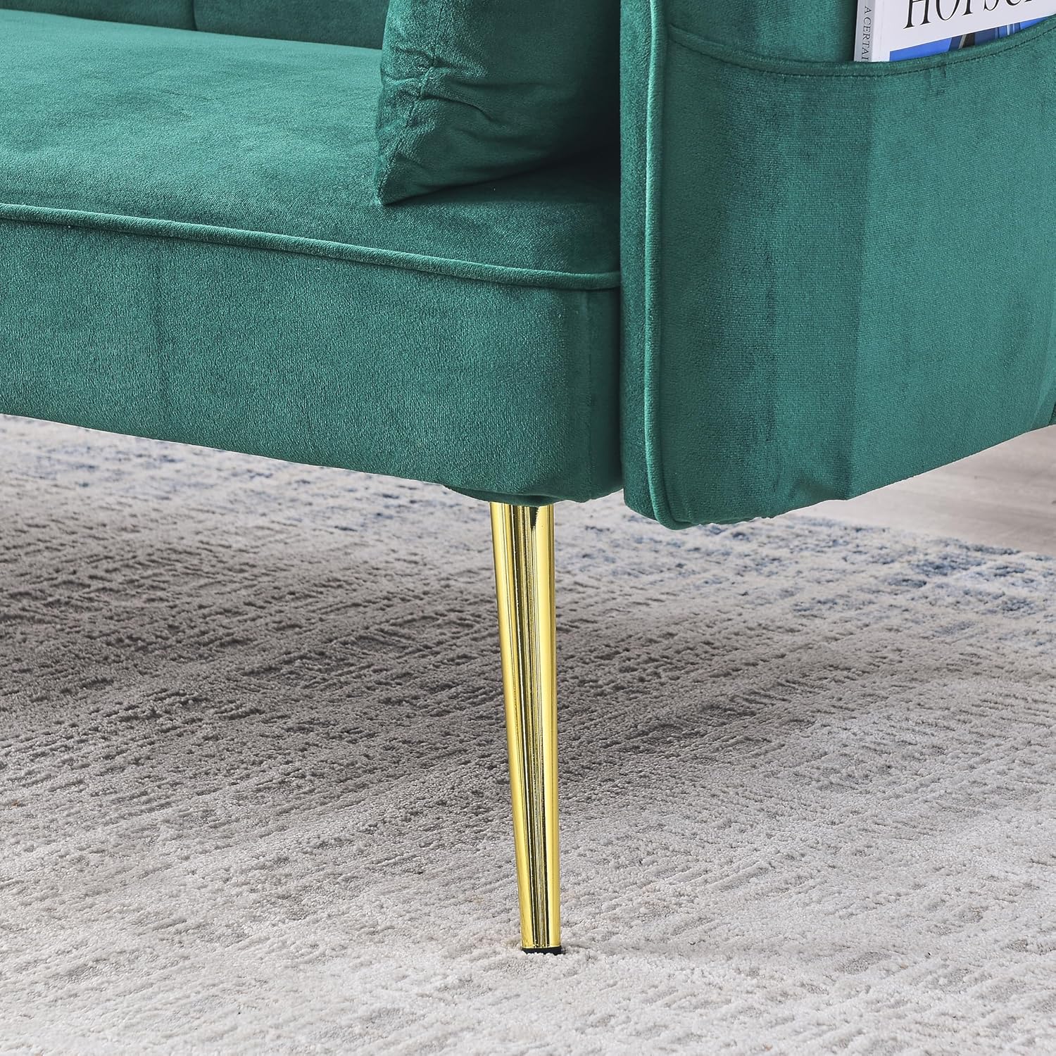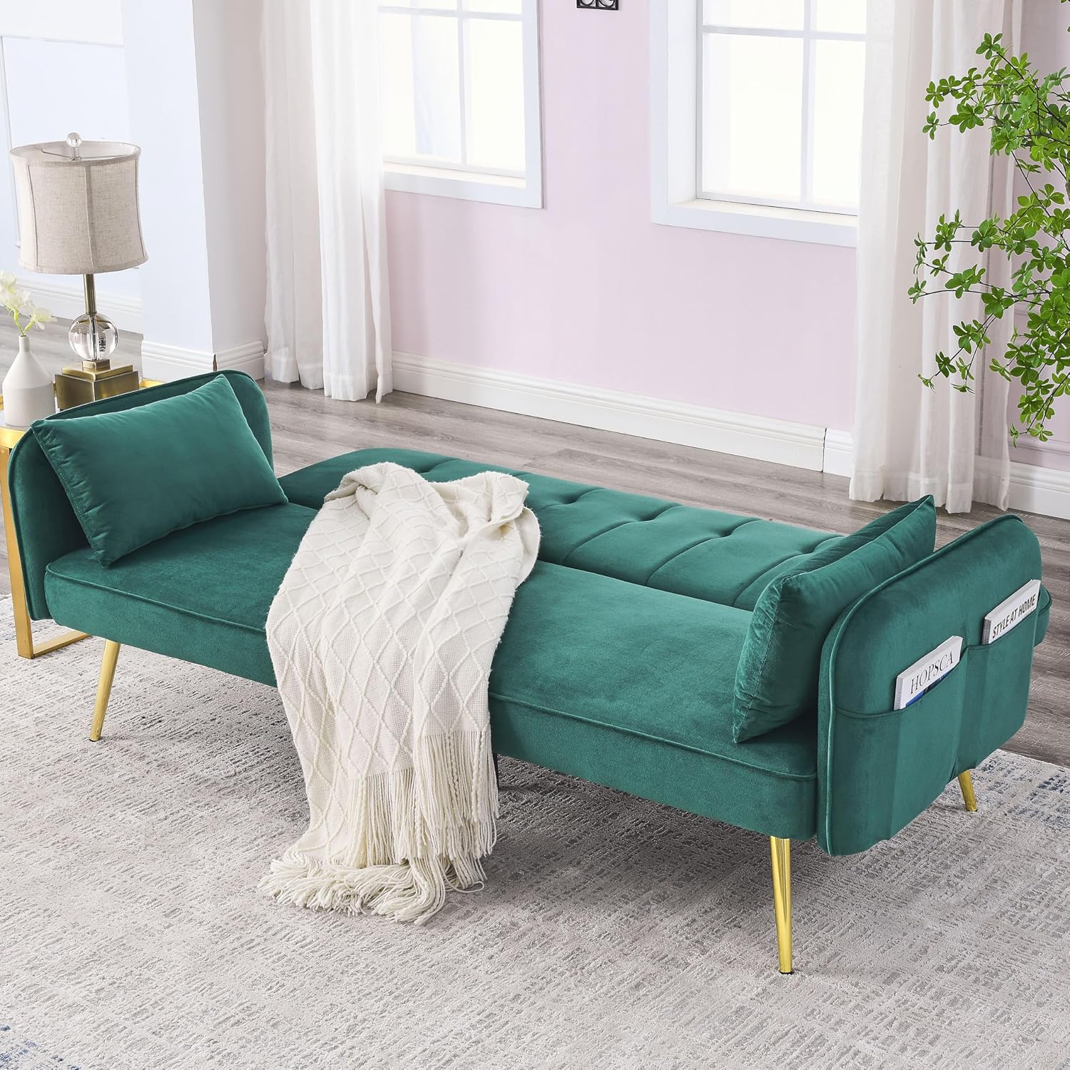 72.5" Convertible Sofa Bed, Adjustable Velvet Sofa Bed - Velvet Folding Lounge Recliner - Reversible Daybed - Ideal for Bedroom with Two Pillows and Center Leg (Green) W1193127056