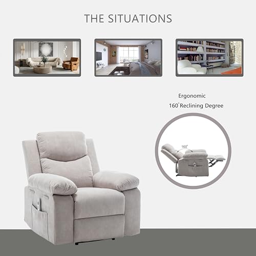 Modern Power Recliner Chair with Adjustable Massage Function, Velvet Electric Power Chair with Heating System Ergonomic One Side Pocket Lounge Single Sofa Seat Living Room (Dark Gray)