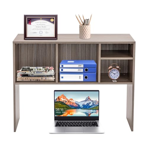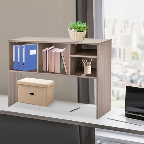 Desk Bookshelf Organizer, Bookshelf Display Shelf Rack with 4 Shelves Office Desktop Shelf Stand,High-Capacity Desk Hutch Organizer for Study Rooms, Dorms, Kitchens, Classroom (Dark Gray)