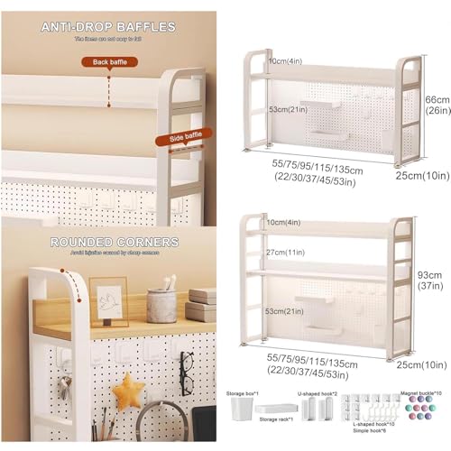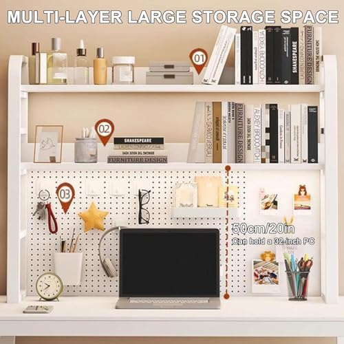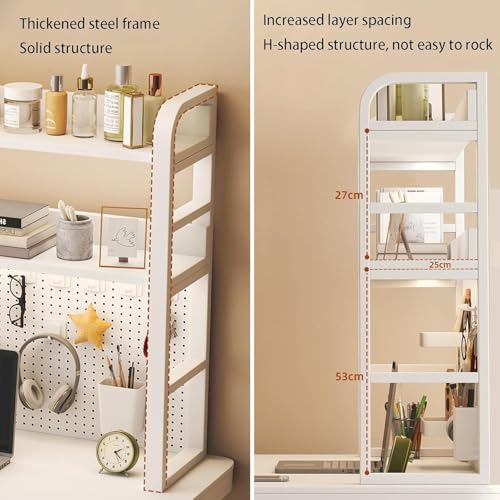 Desktop Bookshelf Thickened Steel with Peg Board, Space Saving Desktop Organizer, H-shaped Structure, Deepen 25cm, Countertop Storage Organizer Rack for Office Home Study