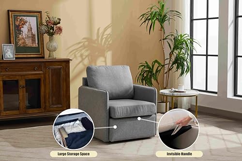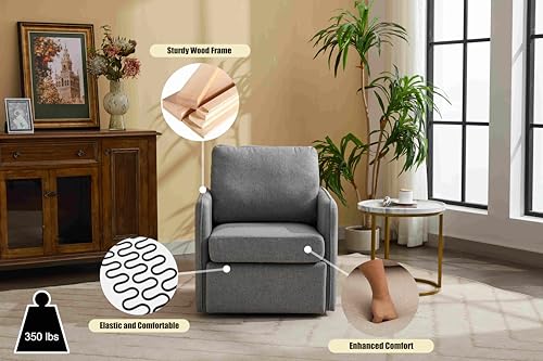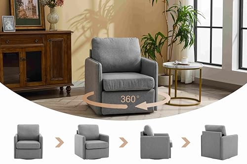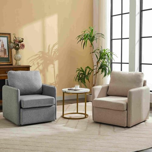 CIPCHO Swivel Accent Chair, Comfy Single Sofa Chair with Storage, Modern Arm Chair for Living Room, Fabric Swivel Armchair with Metal Base (Beige+Brown)