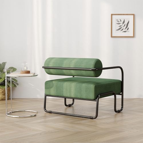 Upholstered Accent Chair, Mid-Century Modern Light Brown Corduroy Armchair with Iron Frame Perfect for Living Room, Bedroom, Belcony, Office