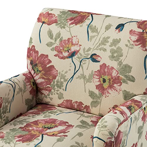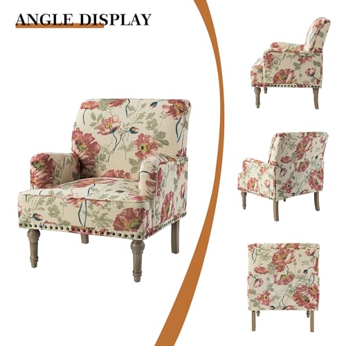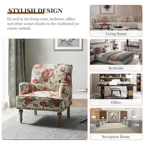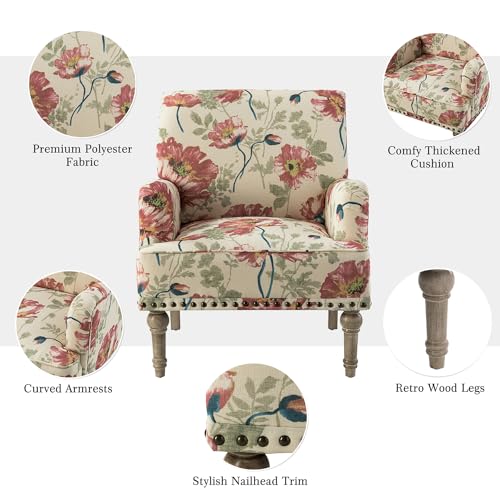 HULALA HOME Modern Armchair with Wooden Legs & Nailhead Trim, Comfy Upholstered Accent Chair for Living Room Bedroom (Floral Patterns, Indigo)