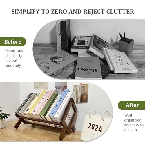 Wood Desktop Shelf Small Bookshelf, Bookcase Organizer Tilting Bookshelves Storage Rack, Display Stand for Living Room/Home/Office Supplies Storage for CDs/Magazine/Books, Home Decor
