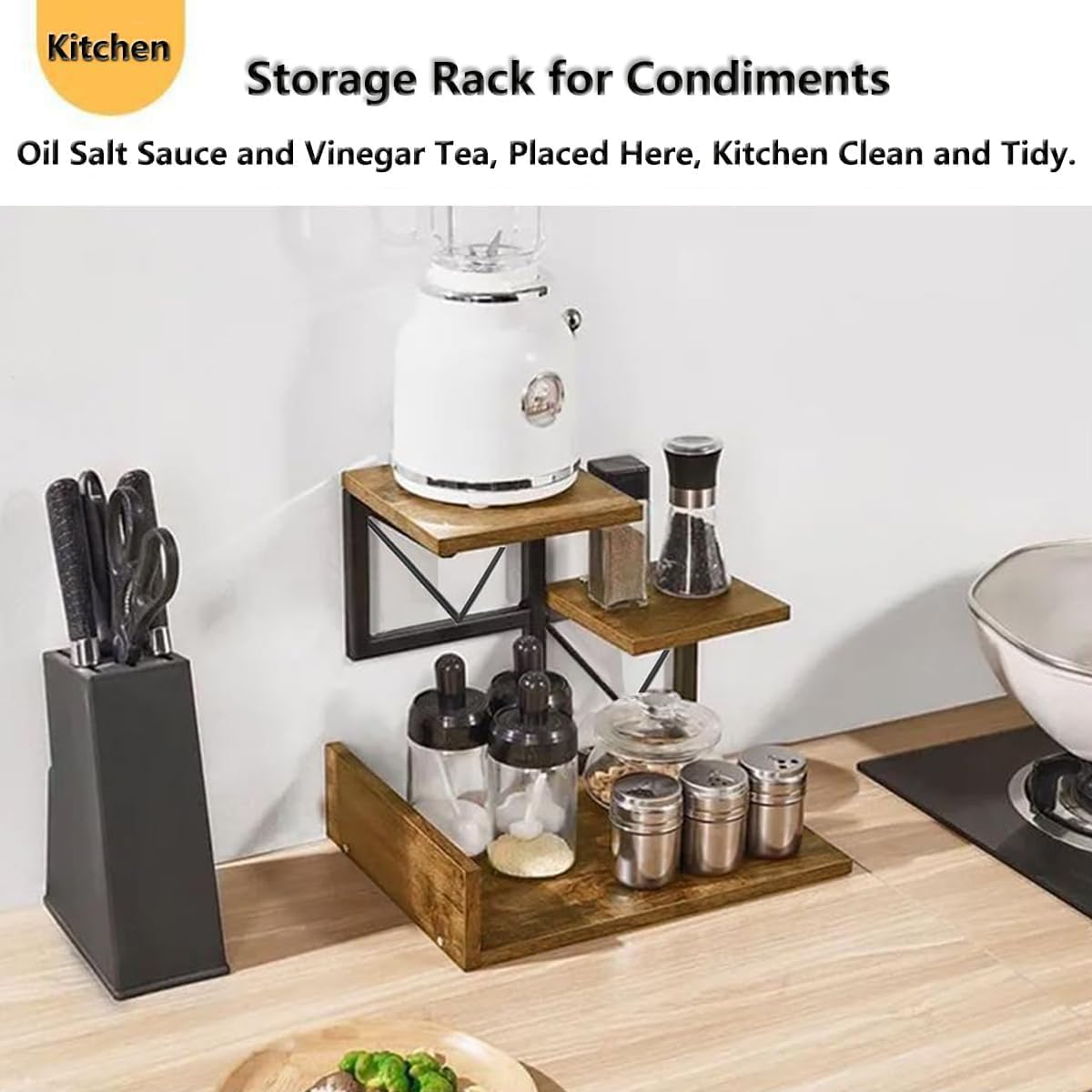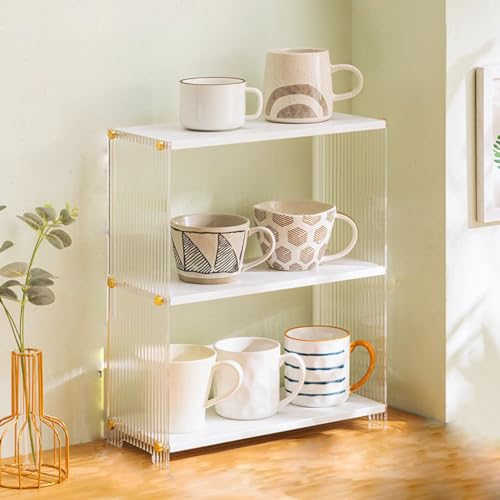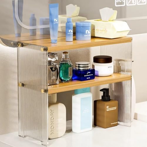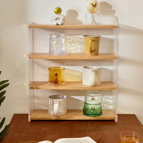 3 Tiers Acrylic Desktop Organizer Office Storage Rack Wood Desk Bookshelf Office Supplies Desk Organizer Mini Cute Kitchen Condiment Shelves
