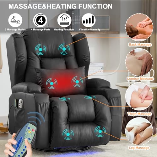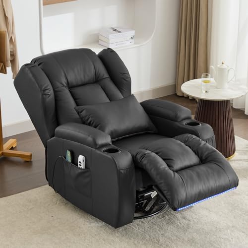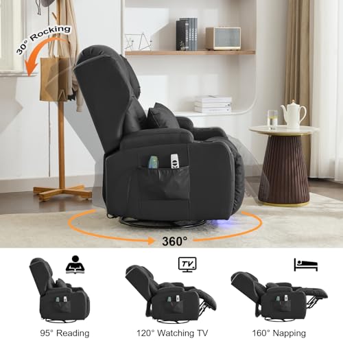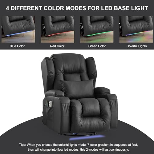 Power Recliner Chair, Velvet Fabric Swivel Rocking Chair with Vibrating Massage and Heating Nursery Glider Chair for Living Room, Home Theater Seating with Ambient Lighting(Single, Brown)