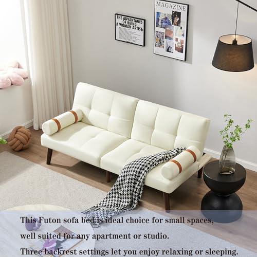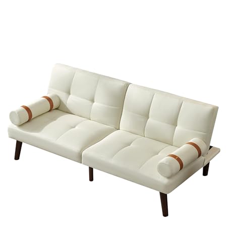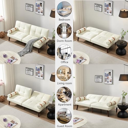 Modern Futon Sofa Bed,Convertible Futon Sleeper Couch with 2 Removable Arms,Loveseat Sofa Bed with Adjustable Split Backrest for Living Room,Bedroom,Apartment,Office (Light Green)