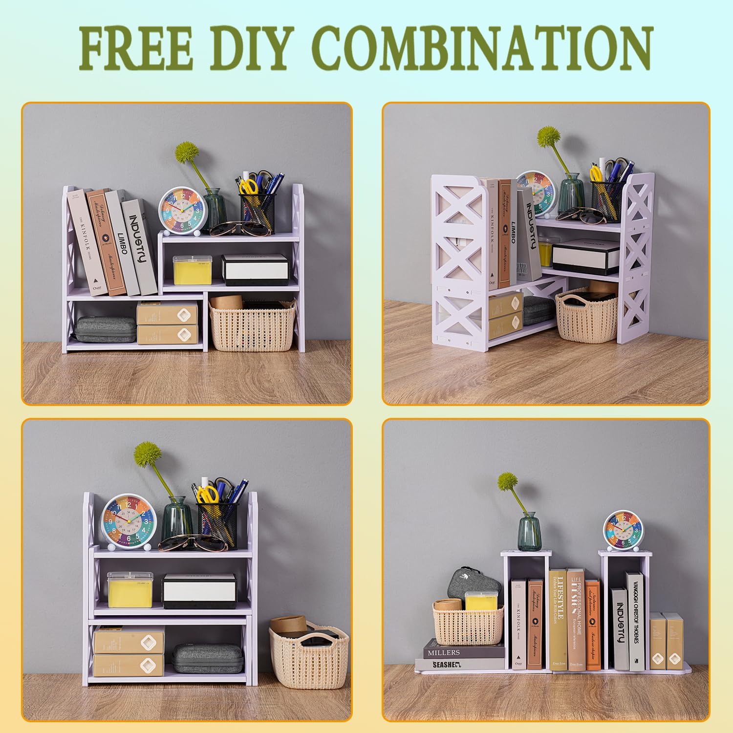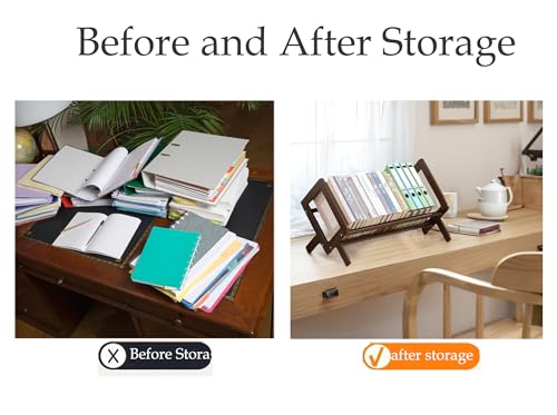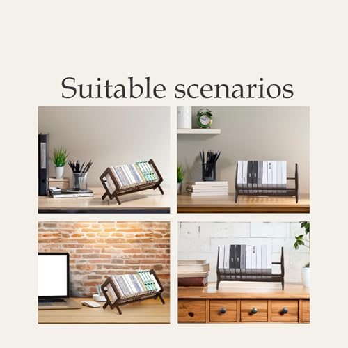 Desktop Bookshelf Organizer Desk Bookcase Record Holder, Quick Assembly-Retro Style Organizer for Book,Magazine, Files (Yellow)