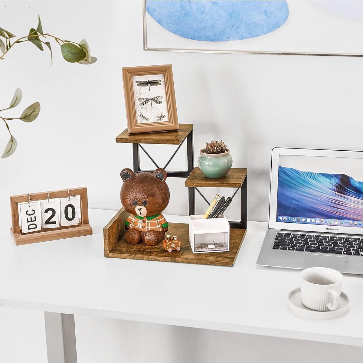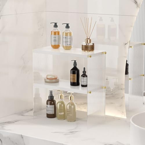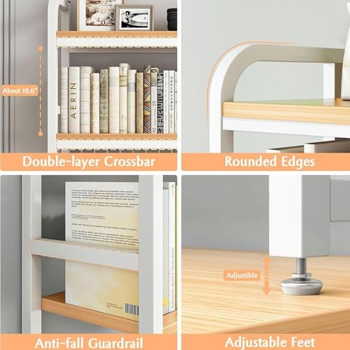 Catekro Desktop Bookshelf, Desktop File Organizer, Office Bookshelf Adjustable Wooden Display Shelf Book Shelf Layered Data Organizer Office Supplies Stationery Suitable for Home Office (White)