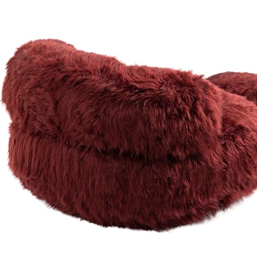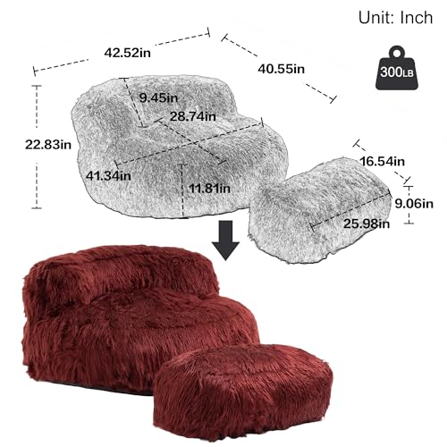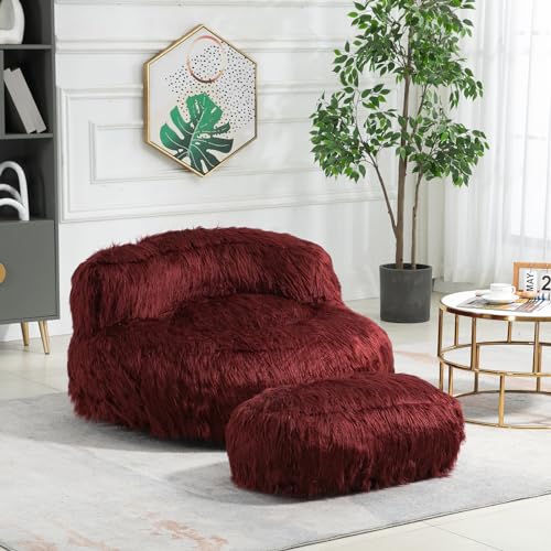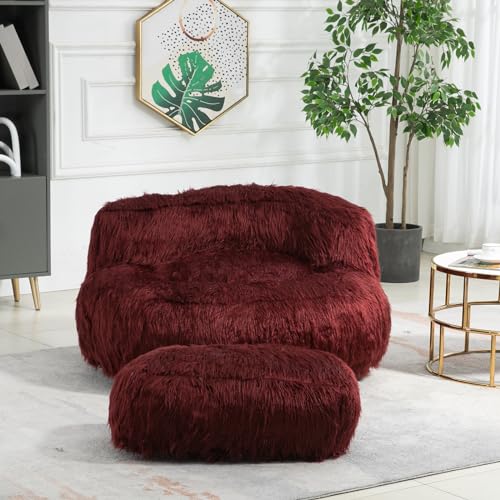 Oversize Bean Bag Chair Faux fur Fluffy Lazy Sofa with Footstool Durable Comfort Lounger High Back Plush Bean Bag Couch for Adults and Kids, Indoor (Pink)