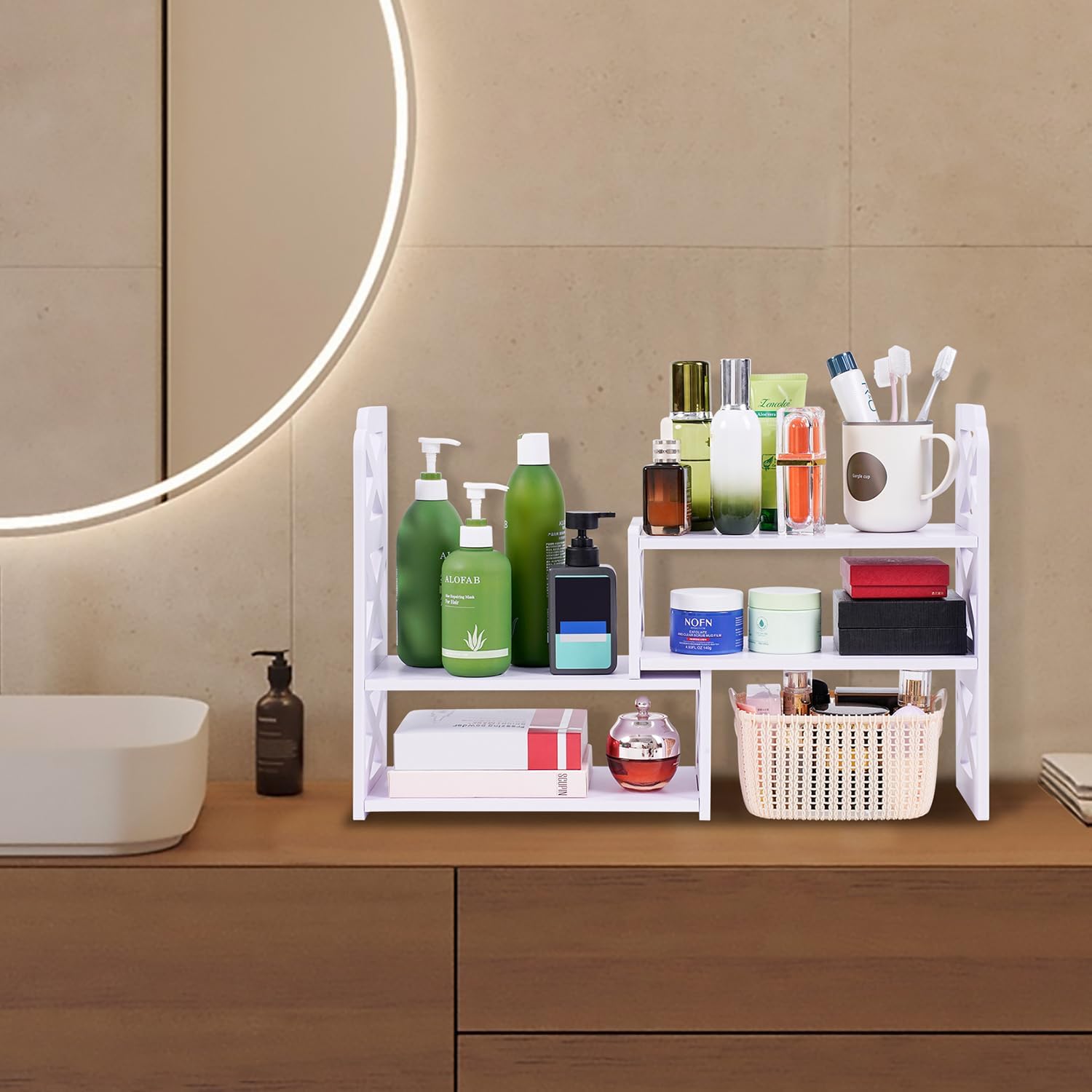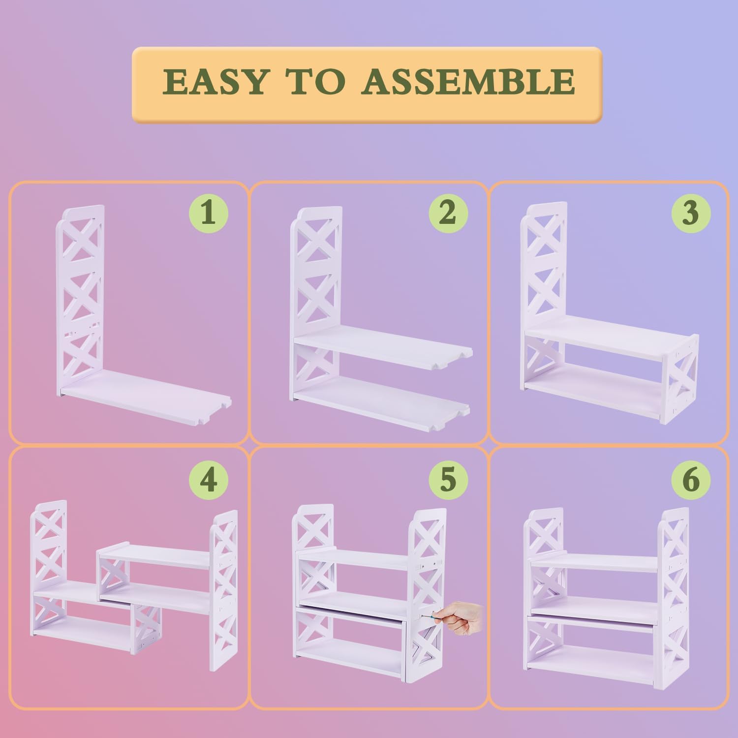Desk Organizer Expandable Bookshelf White Adjustable Small Bookshelf for Desktop Storage Mini Cute Office Desk Shelves for Classroom Office Dormitory Home