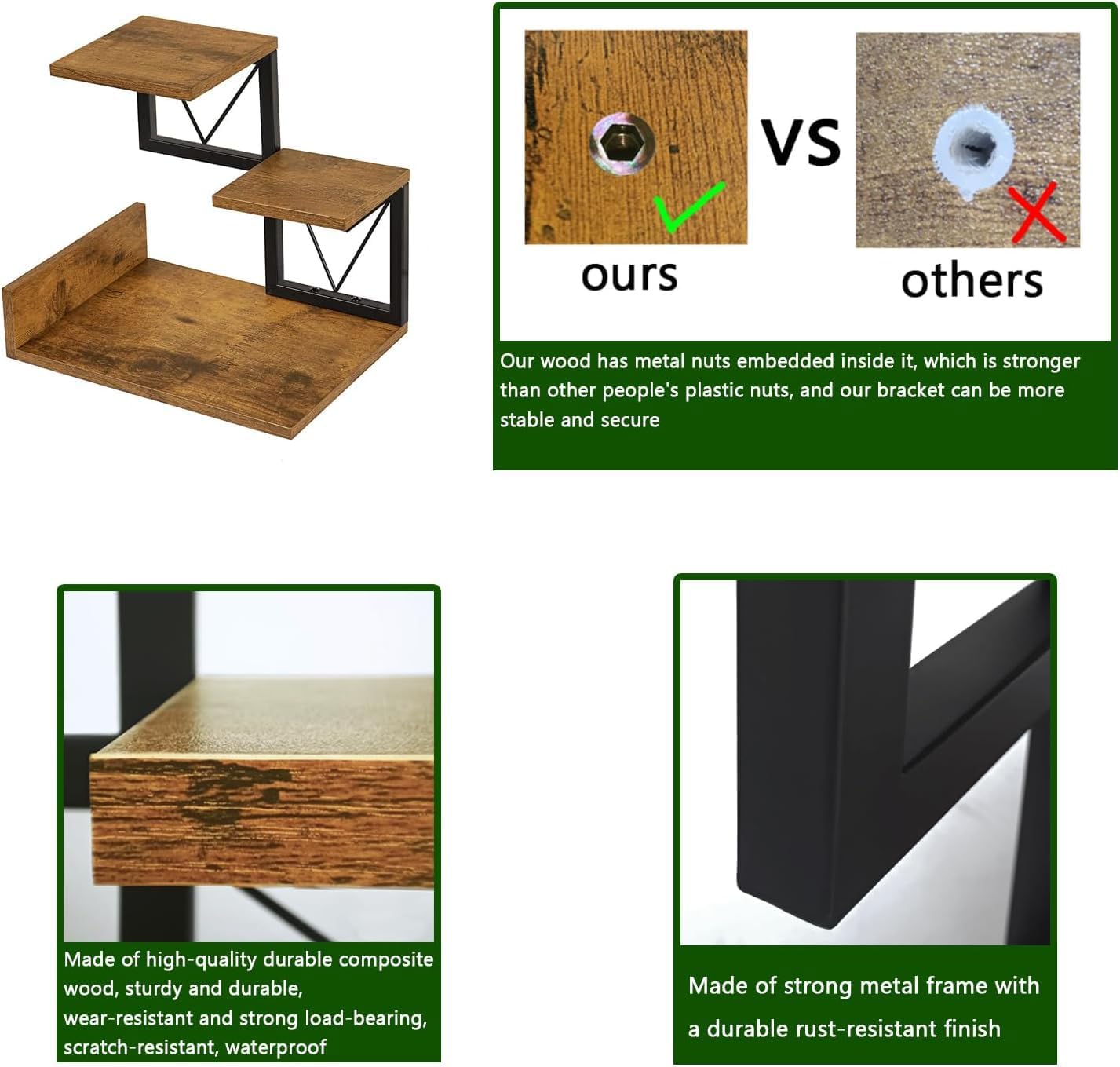 Desktop Wooden Shelf, 3 Tier Bookshelf Desk Supplies Organizer, Tabletop Shelf Storage Rack Display Stand Rustic Counter Shelf Decor for Home/Office/Kitchen/Study Room/Living room