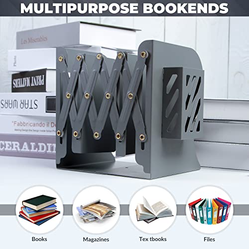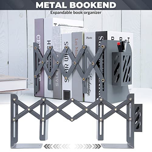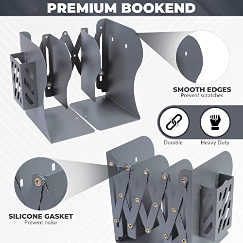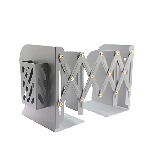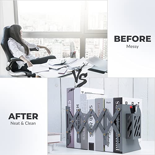 Adjustable Desk Storage Bookends with Pen Stand Holder – 2-in-1 Bookend and Pen Stand – Telescopic Design – Expands Up to 20” – Multipurpose and Versatile – Desktop Accessory