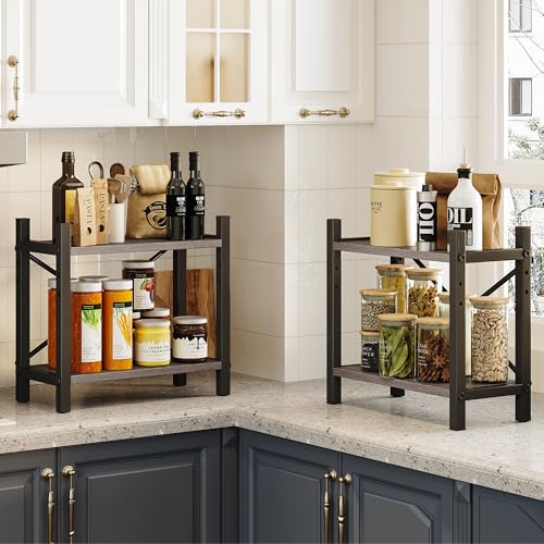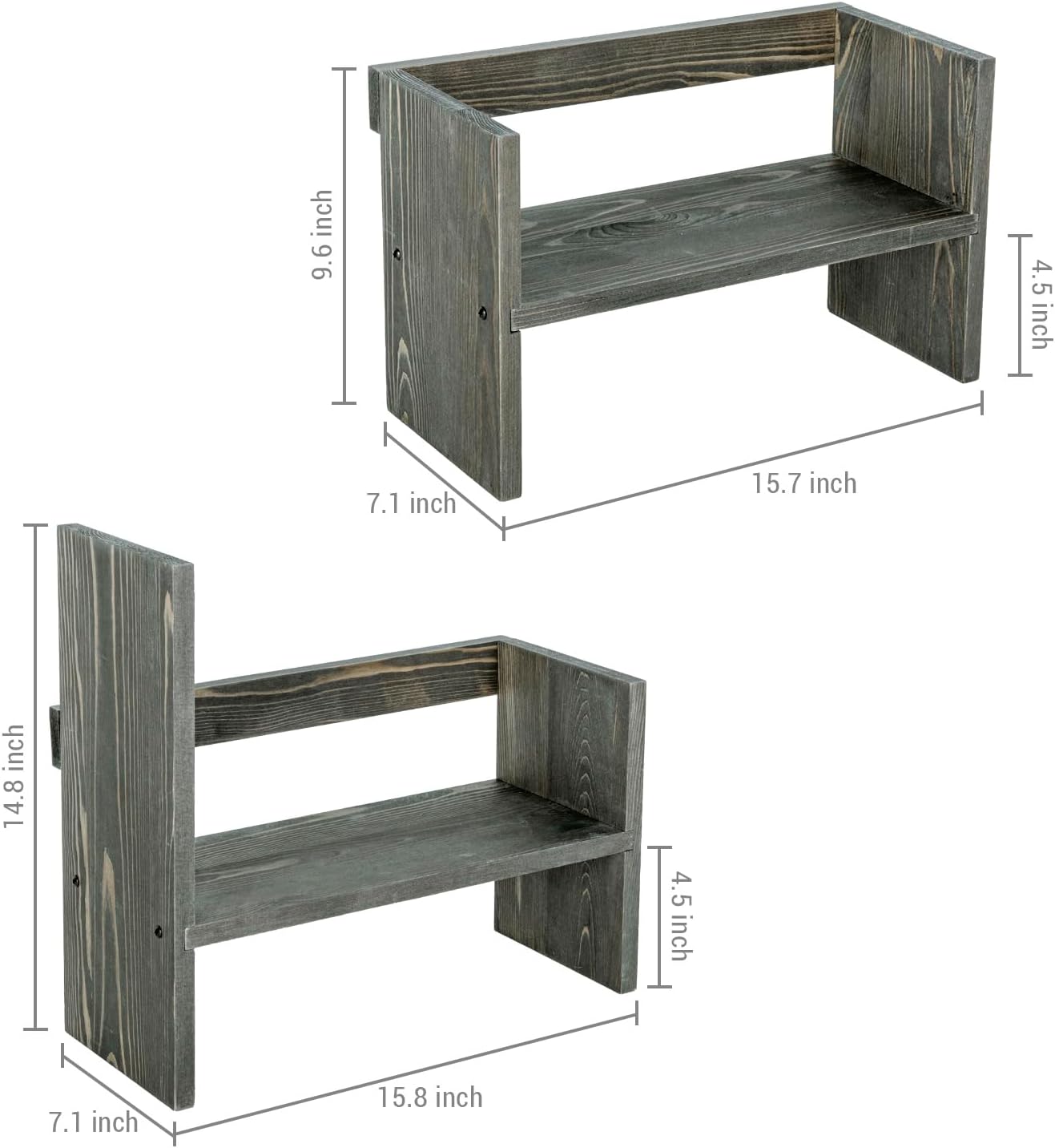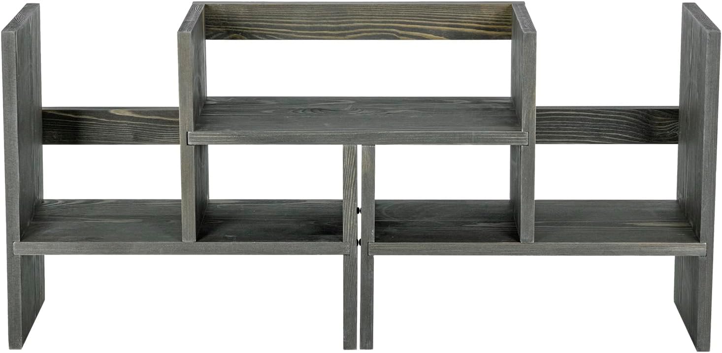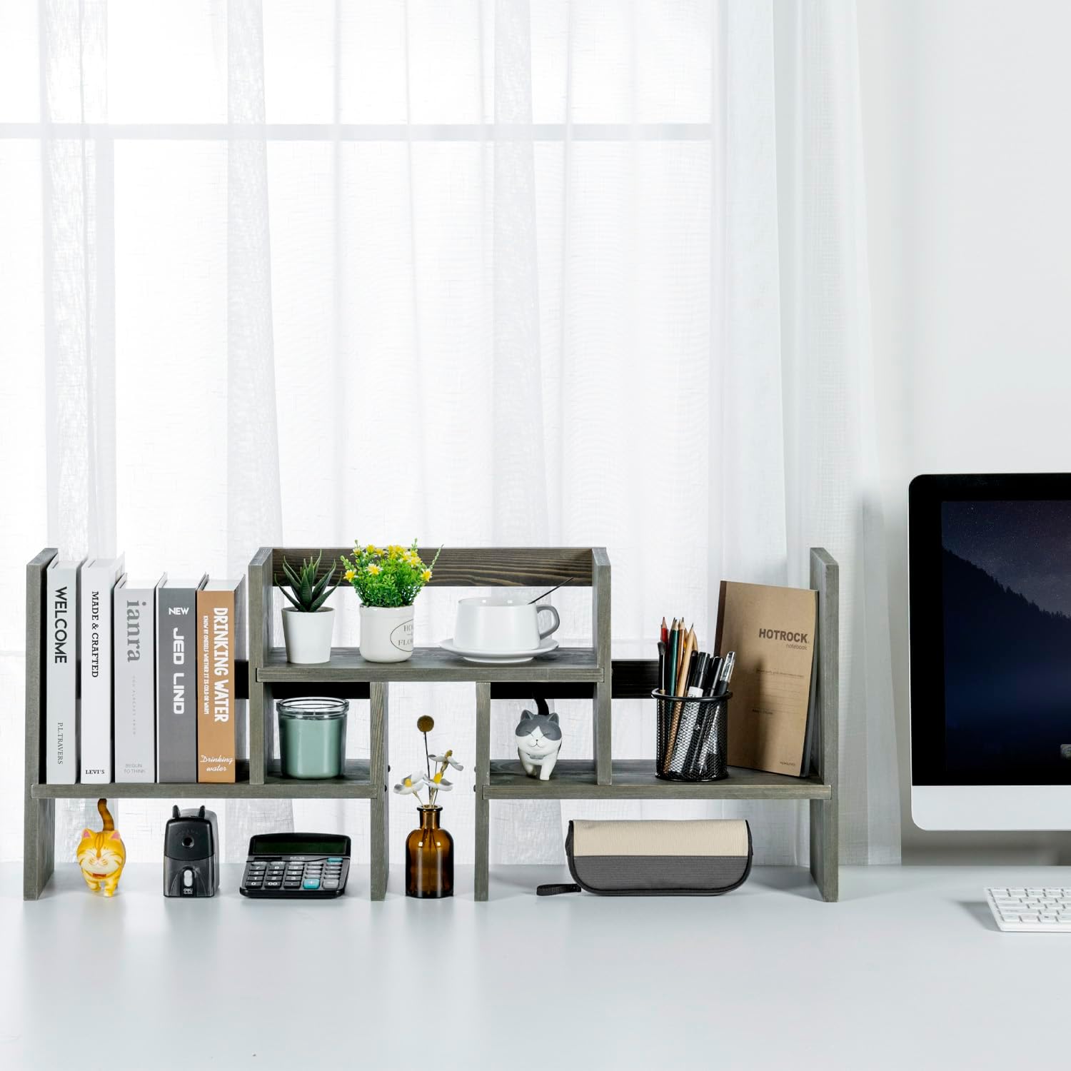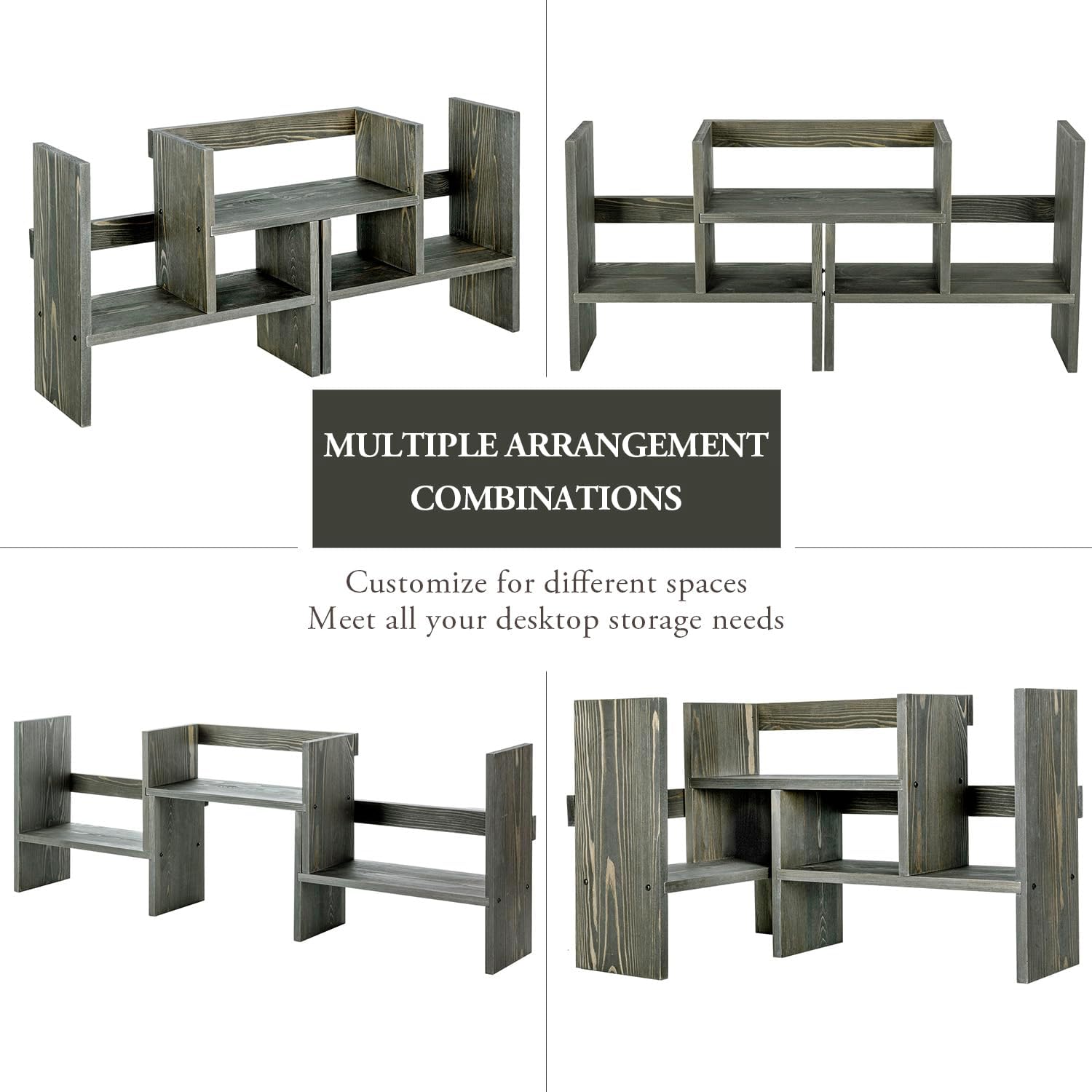 MyGift Adjustable Desktop Shelf, Deluxe Vintage Gray Solid Wood Stackable Multilevel Bookshelf Organizer Stand, Home or Office Desk Storage Shelving Rack