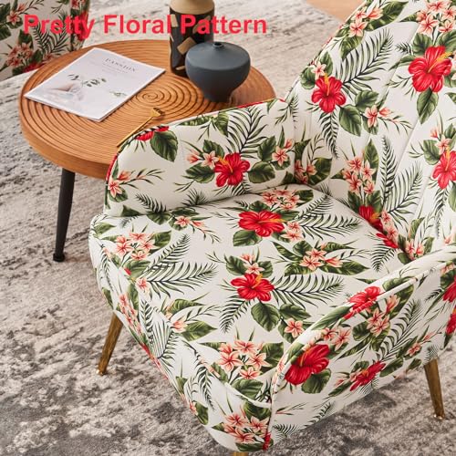 Fabric Floral Accent Chair Club Chair, Modern Living Room Chairs, Comfy Upholstered Reading Chair for Bedroom, Single Sofa, Wingback Chair