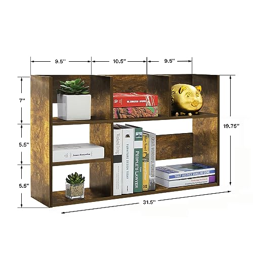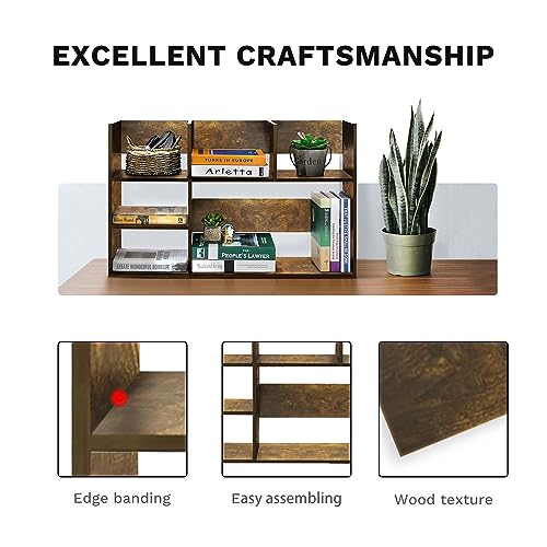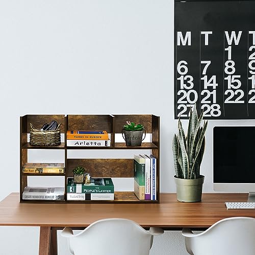 TY ARTS & CULTURE - Wood Desktop Storage Organizer Multipurpose Desk Bookshelf Case Display Large Shelf Rack Counter Top Bookcase for Office Home (Brown)