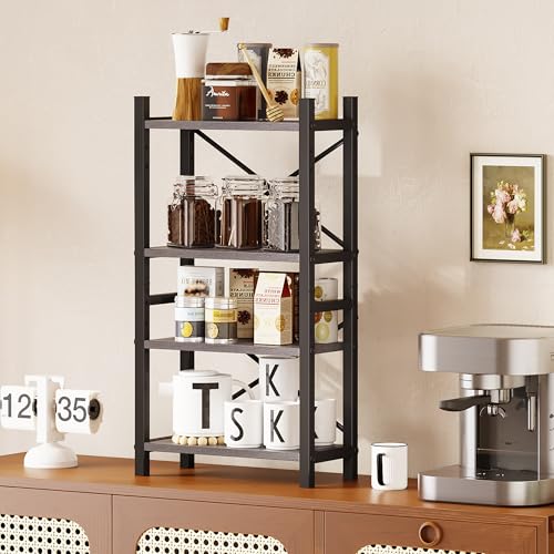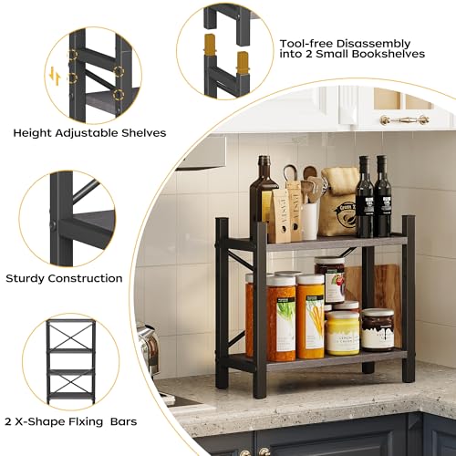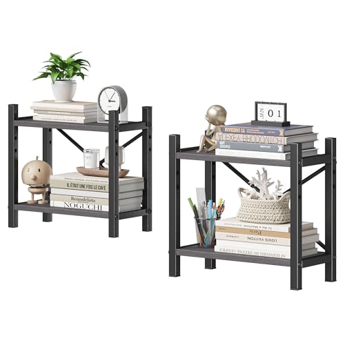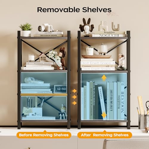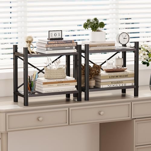 Desktop Bookshelf, 4-Tier Stackable Narrow Desk Bookcase, Adjustable Industrial Desk Organizer Display Shelf, Wood Desktop Book Organizer for Living Room, Bedroom and Home Office-Rustic Brown