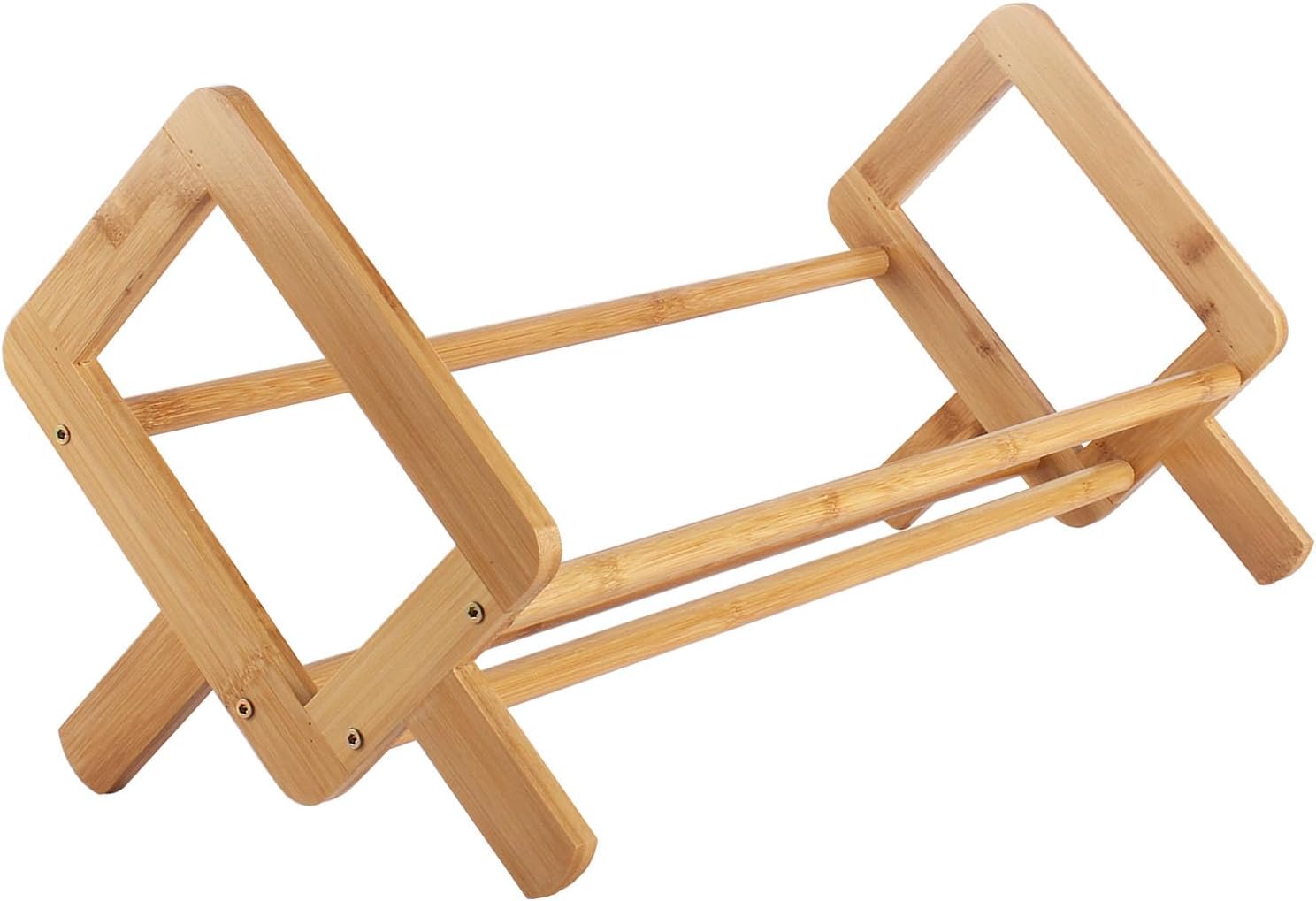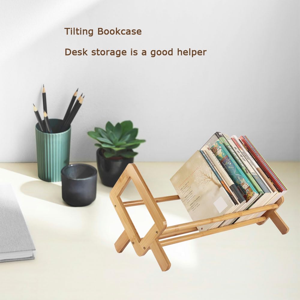 Bamboo Tabletop Bookshelf Table Top Bookshelf Tilting Bookcase Desk Shelves Desktop Storage for Books Magazine CD, Recipe Display,Tiny Bookshelf and Storage Rack in Office and Home(Wood Color), Brown