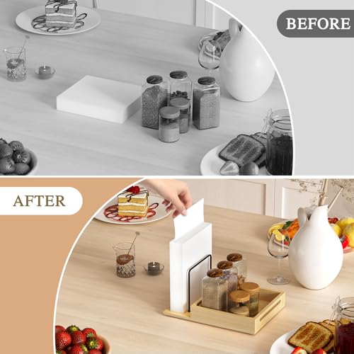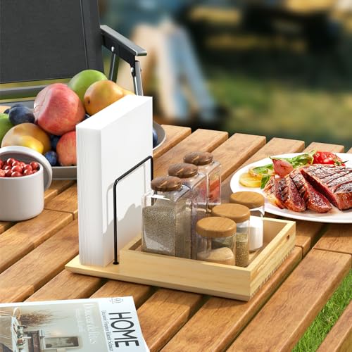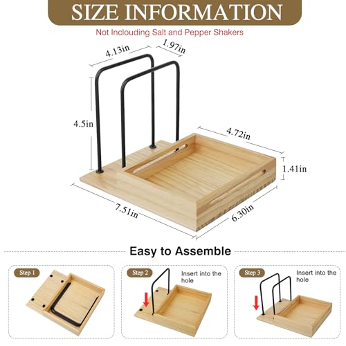Napkin Holder for Table,Metal Wood Napkin Holder with Salt and Pepper Shakers Caddy,Napkin Holders for Kitchen,Napkin Holders for Paper Napkins,Modern Napkin Holders for Kitchen,Bathroom,Countertop