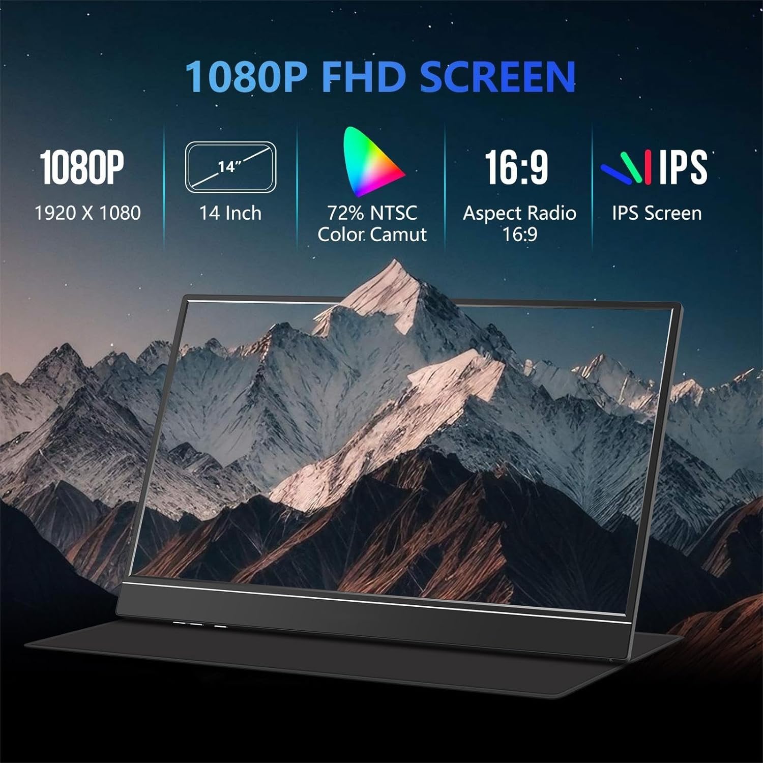 Portable Monitor for Laptop, 14 Inch 1080P FHD IPS USB C Second Screen Extender, Travel Monitor with USB A Smart Cover Speakers for Laptop