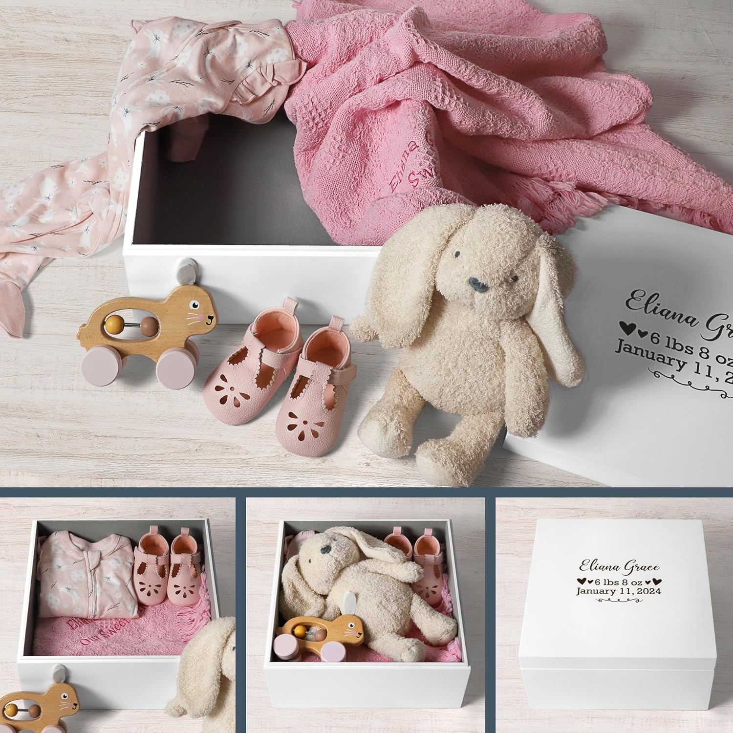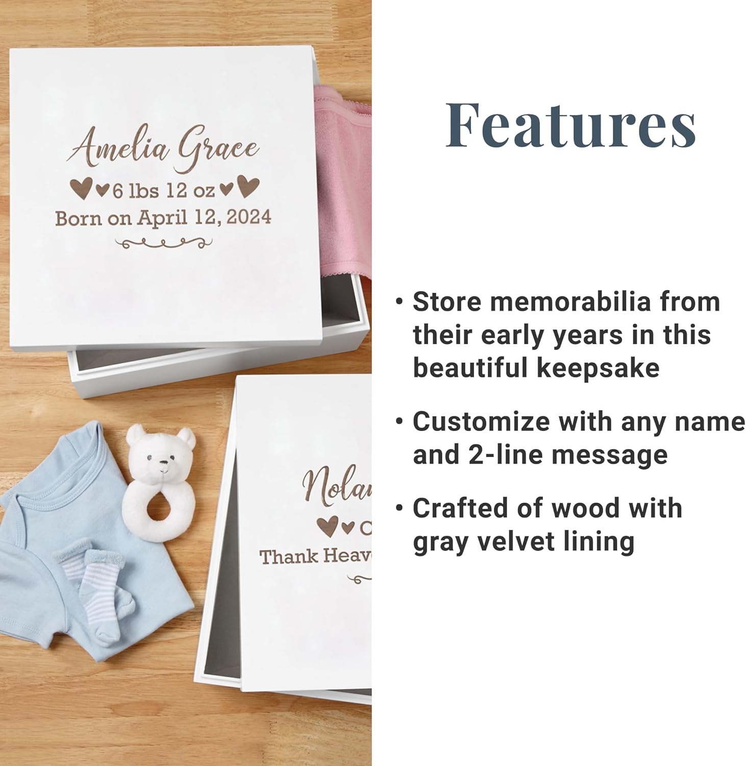 Let's Make Memories Personalized Keepsake Box for Newborn - Memento Storage - Memories Box -Nursery Décor - 6" Hx12 Sq - Baby Love