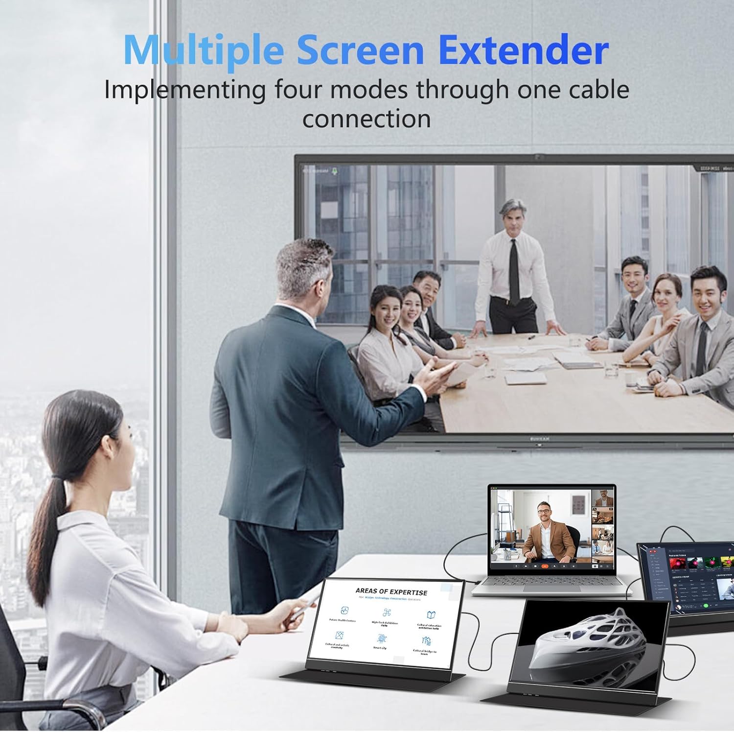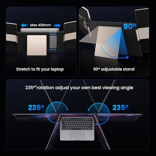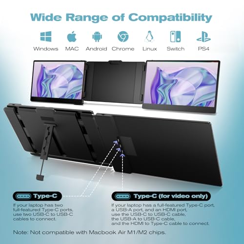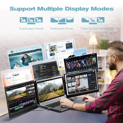 Laptop Screen Extender, 14.2” FHD 1080P IPS Portable Monitor for 13.3”-17” Laptop, HDMI/USB-A/Type-C Laptop Monitor Extender with Kickstand, Plug and Play for Mac/Wins/Android/Switch
