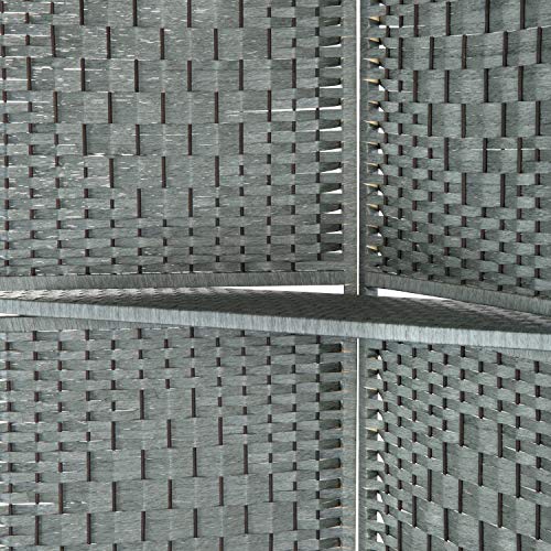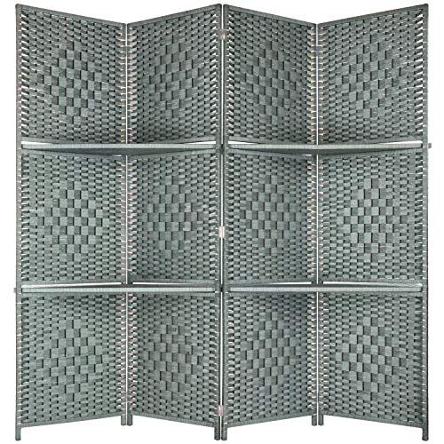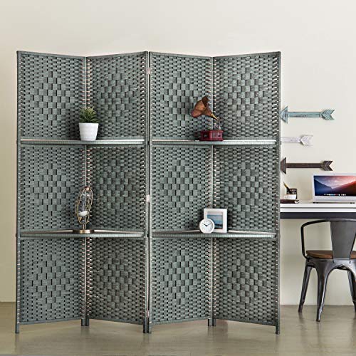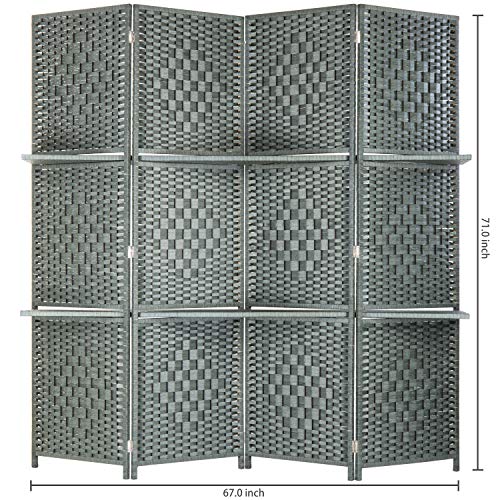 MyGift Decorative Hand Woven Bamboo 4-Panel Room Divider with 2 Tier Display Shelves & 2-Way Hinges, Gray