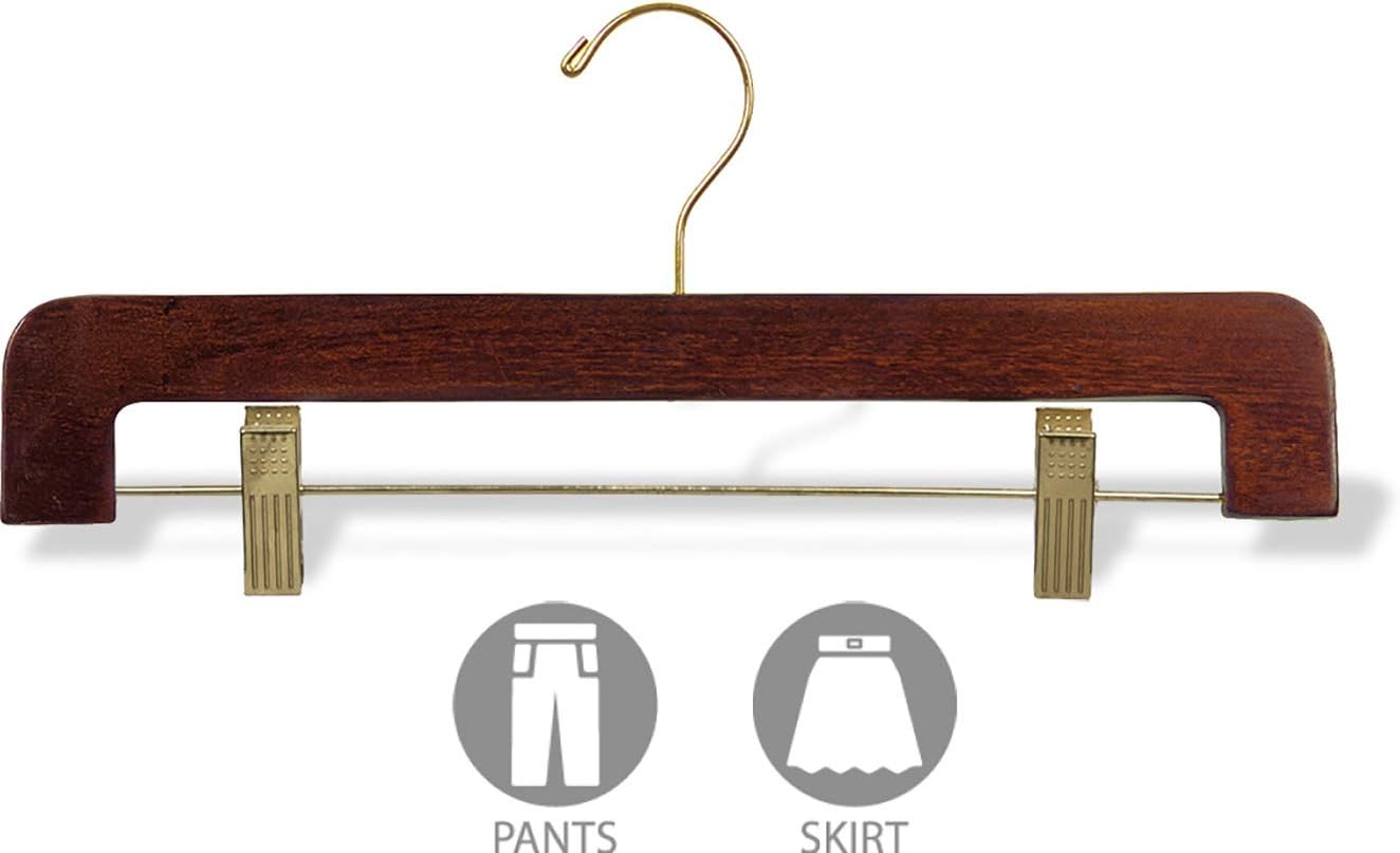 Deluxe Wooden Bottom Hanger w/Clips, Walnut Finish with Brass Hardware, Box of 25 by The Great American Hanger Company