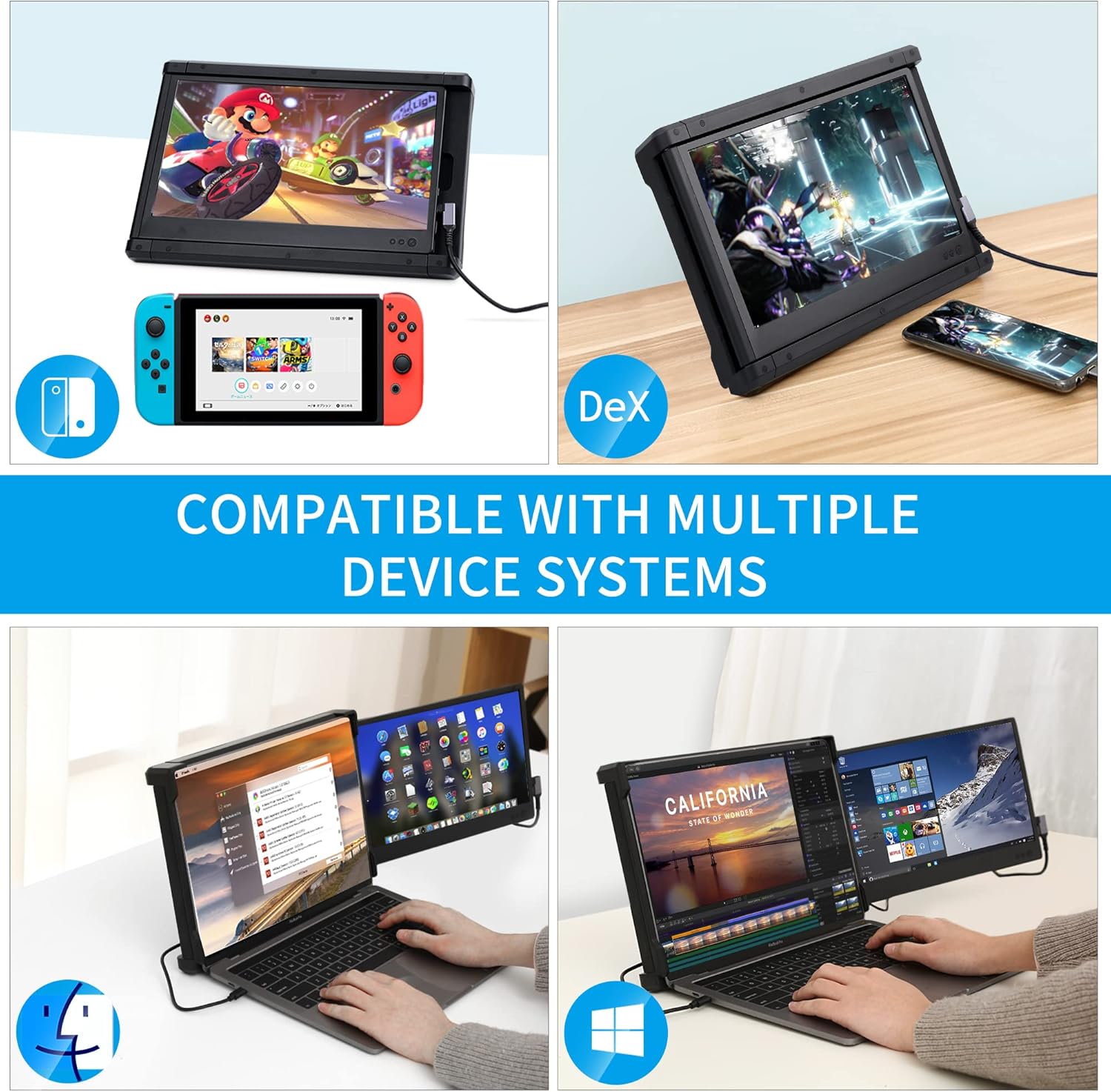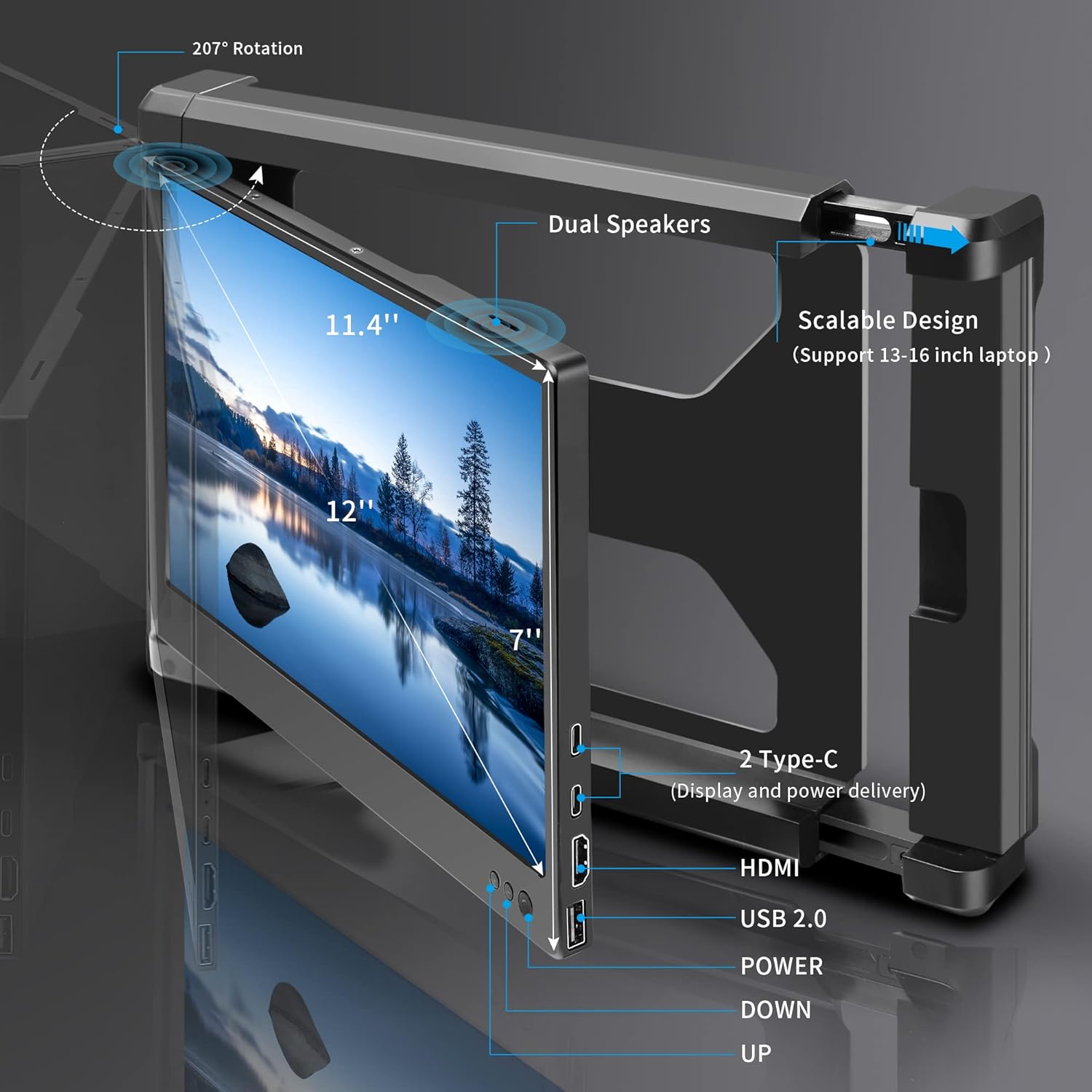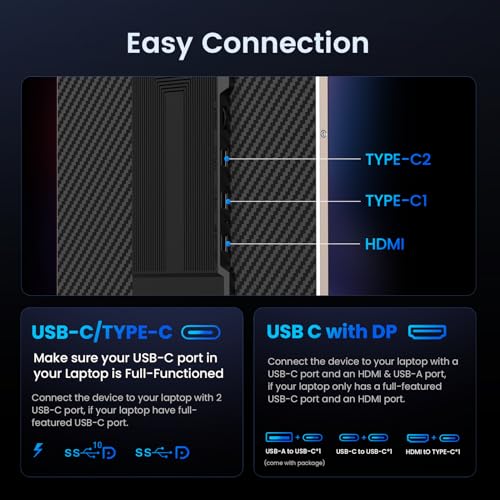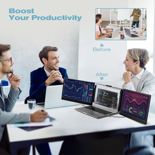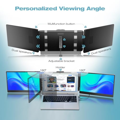 Alecewey Portable Monitor for Laptop Screen Extender Dual Monitor 12 Inch FHD 1080P IPS Display USB-A/Type-C/HDMI/Speakers for 13-16 Inch Computer Mac Windows Phone